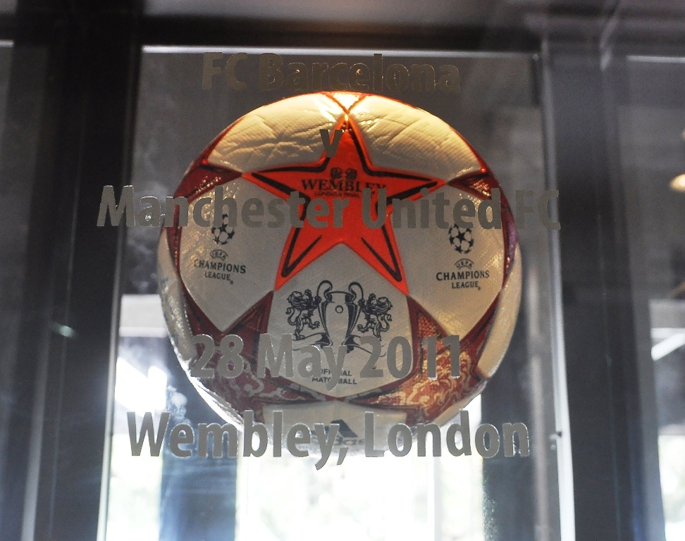 | Quả bóng được sử dụng ở trận chung kết năm 2011 có chữ ký của Messi, Xavi và Carles Puyol. |