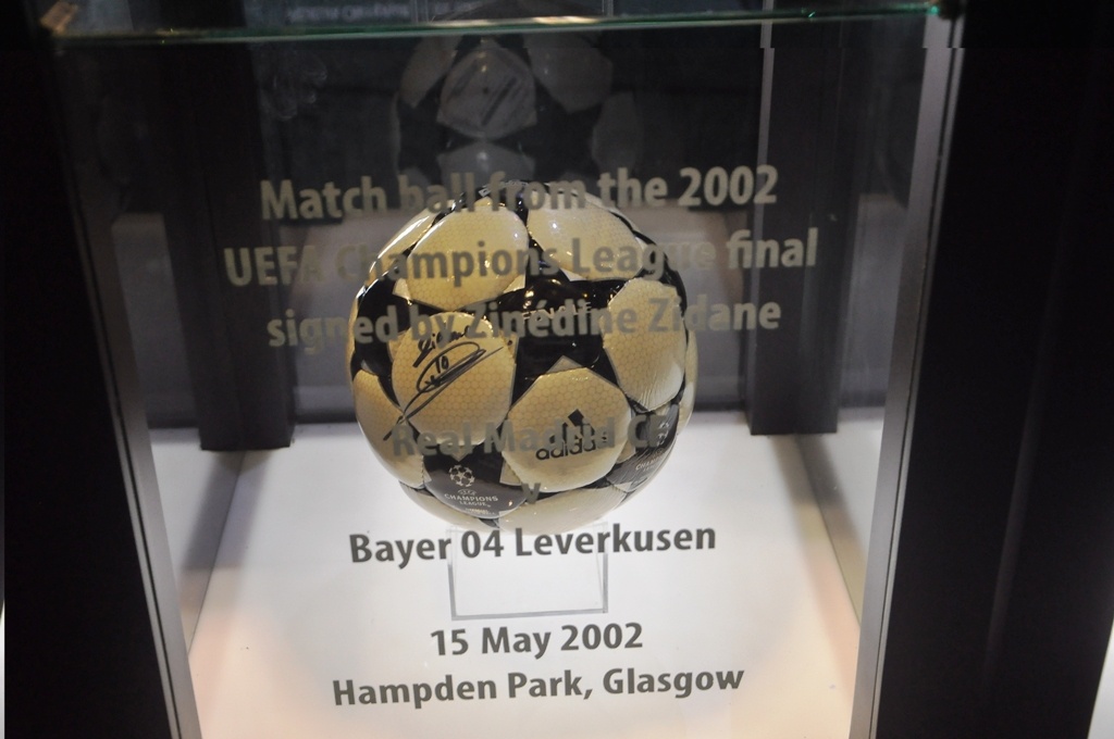 | Quả bóng có chũ ký của Zidane được sử dụng ở trận chung kết năm 2002. Real Madrid thắng Leverkusen 2-1 bằng siêu phẩm volley của Zidane. |