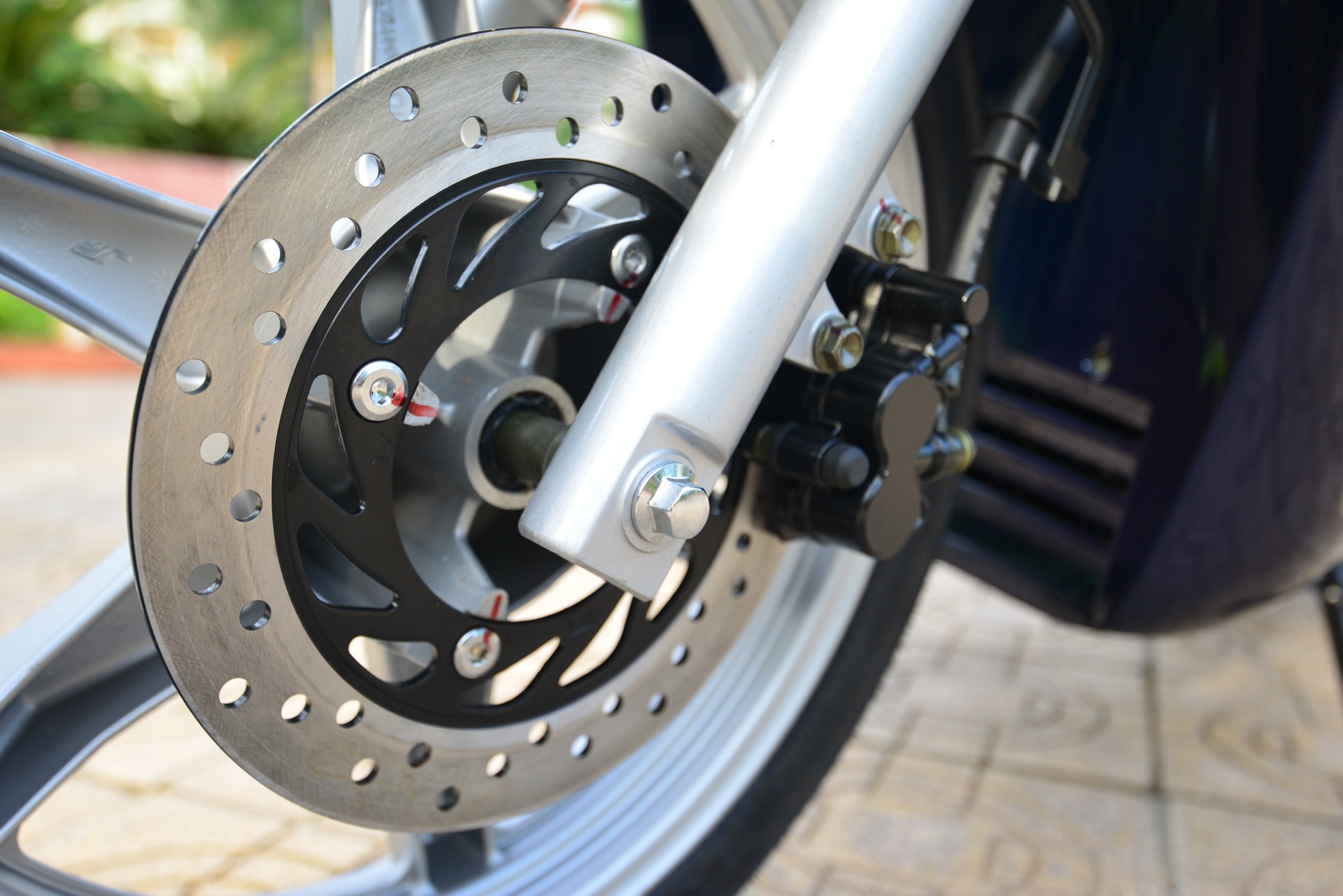 | Caffe Nero được trang bị lốp trước 100/80-16, đi cùng bộ vành xe 6 chấu. Phuộc trước dạng ống lồng thủy lực, đường kính 33 mm. |