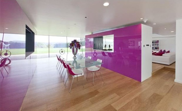 Toàn bộ nội thất trong căn biệt thự được trang trí bằng gam màu tím lãng mạn và bắt mắt.