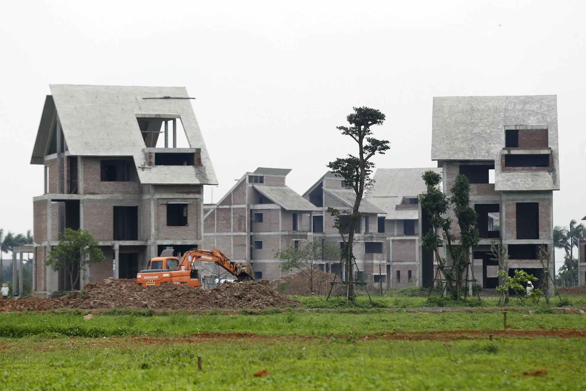 Ngôi biệt thự được quảng cáo là 200 m2 có giá rẻ hơn chung cư, chỉ 8 triệu đồng/m2, thực chất là một lô đất mới có móng bao quanh, vẫn còn trơ cọc sắt.