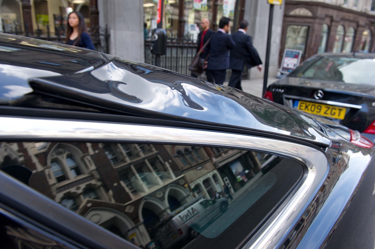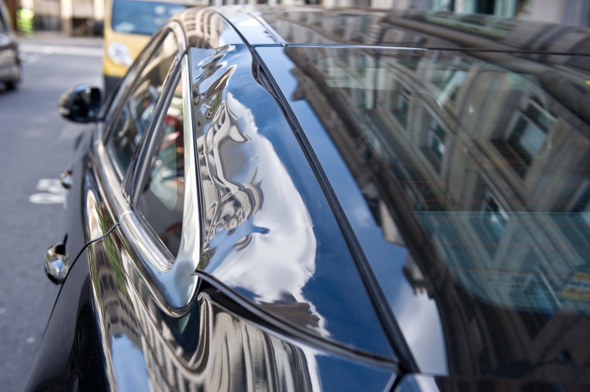 | Siêu xe Jaguar biến dạng méo mó vì sức nóng từ ánh sáng cao ốc Walkie-Talkie. Chủ nhân của xe sang kể, ông đậu xe đối diện với tòa nhà khoảng một tiếng đồng hồ. Khi quay lại, ông thấy gương, cửa biến dạng. Ảnh: Huffington Post. |