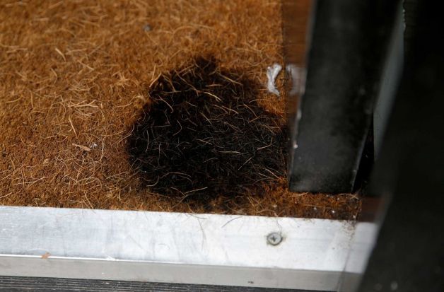 | Tấm thảm chùi chân cháy tại một cửa hàng gần cao ốc Walkie-Talkie. Người ta cho rằng, ánh sáng từ tòa nhà chọc trời đã đốt cháy tấm thảm. Ảnh: AP. |