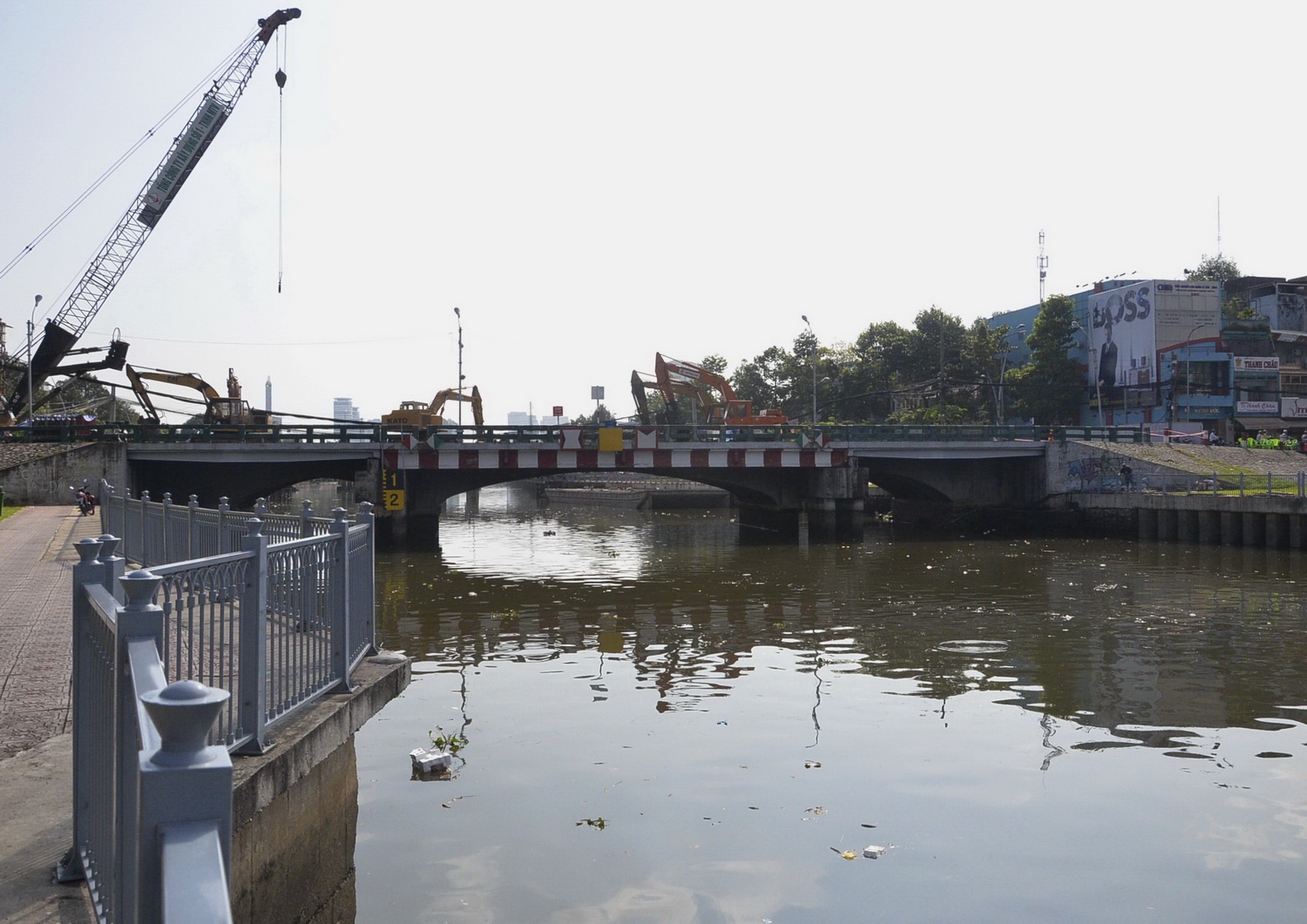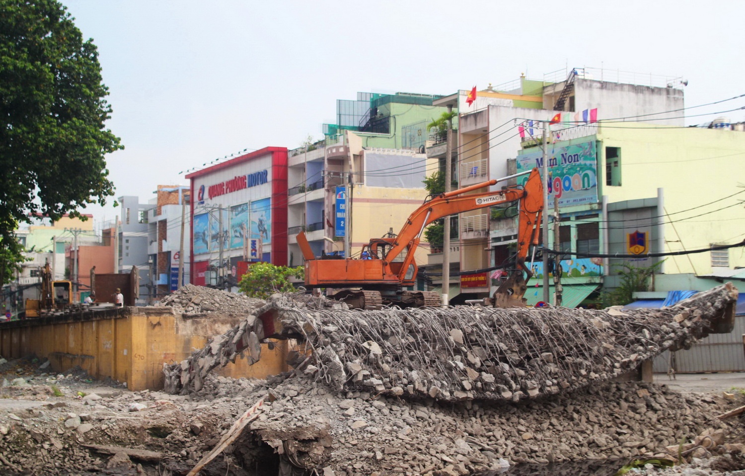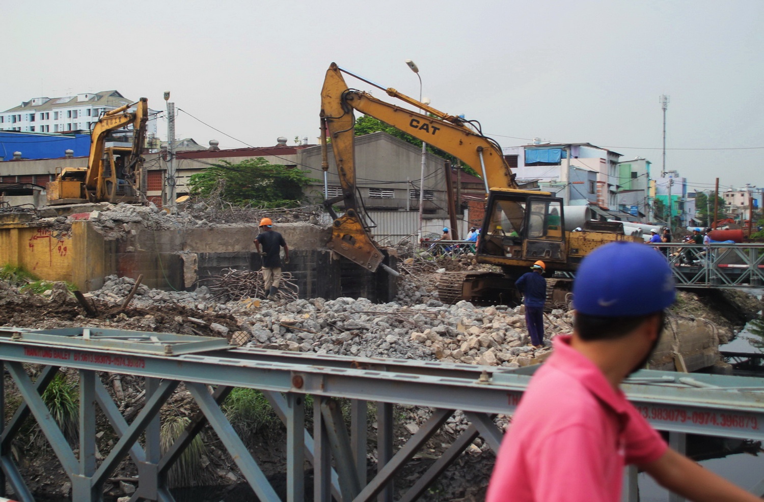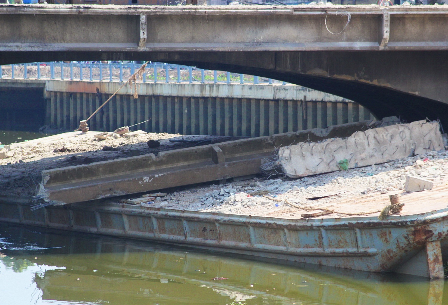 Phần dầm và mặt cầu bắt qua kênh Tân Hóa - Lò Gốm đã được phá bỏ.