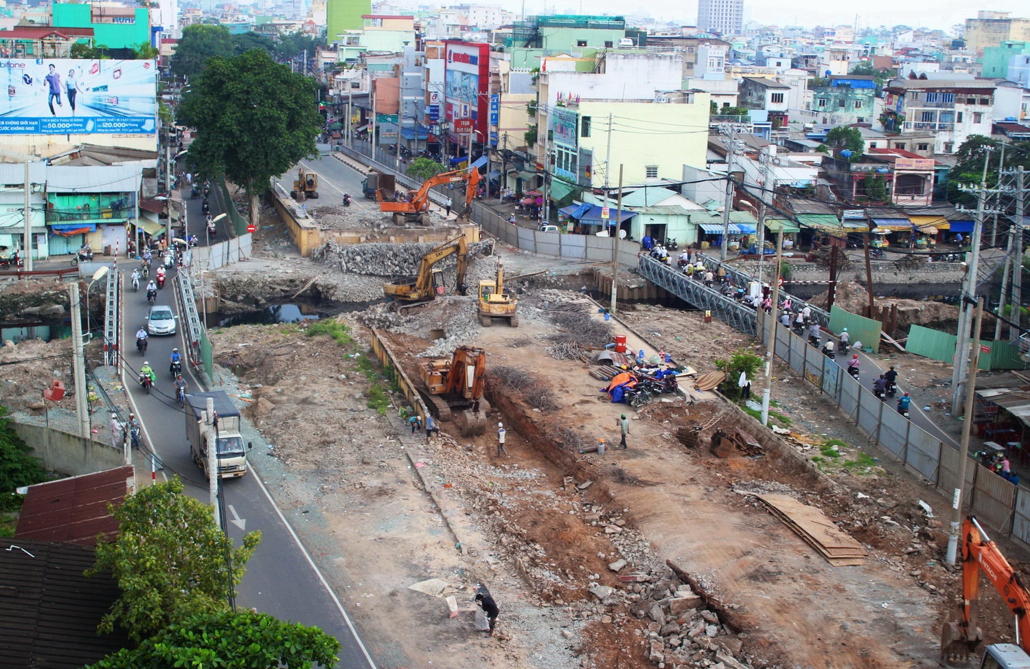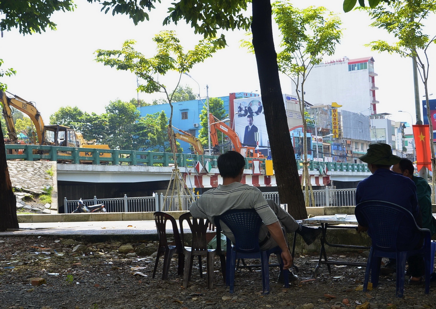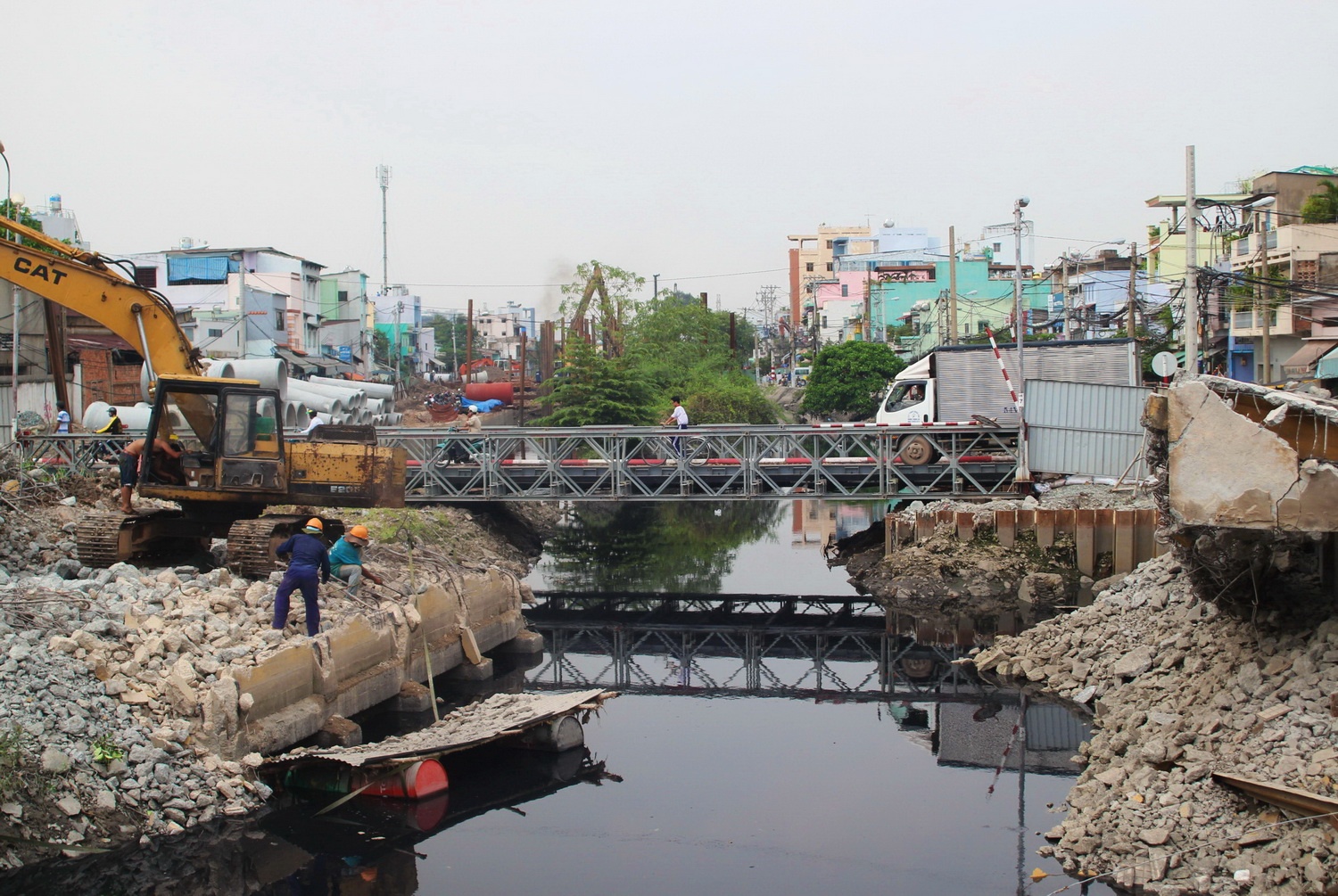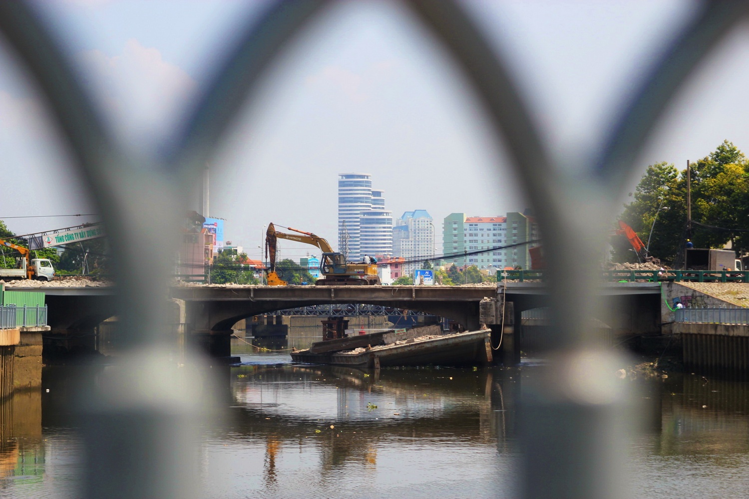 Phần dầm và mặt cầu bắt qua kênh Tân Hóa - Lò Gốm đã được phá bỏ.