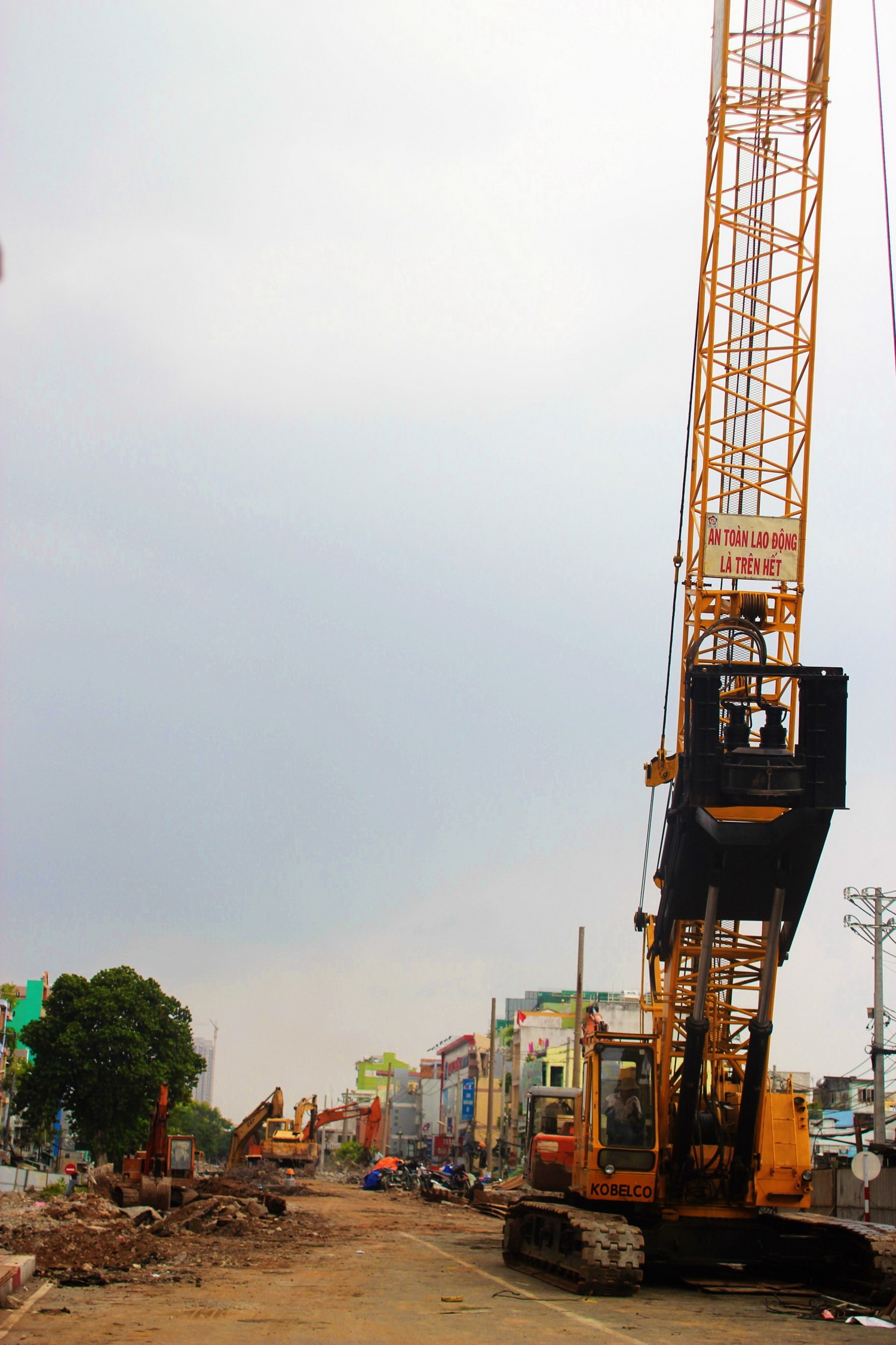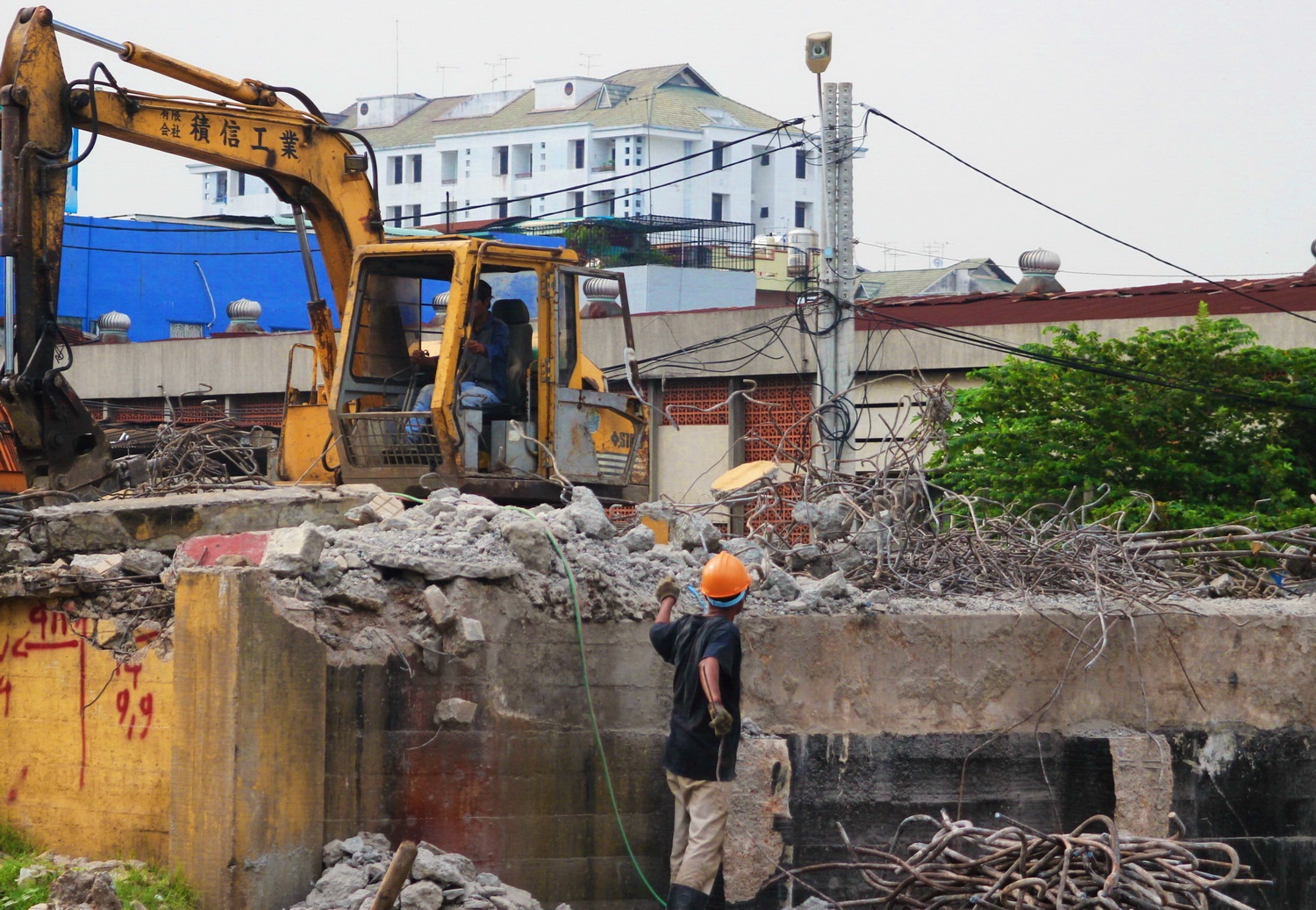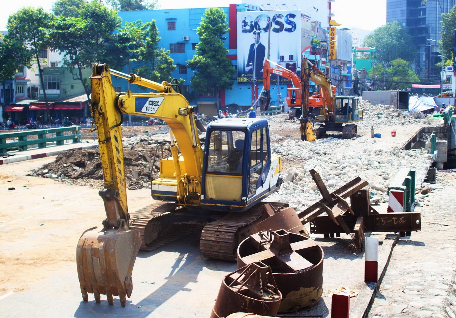 Công việc được tiến hành khẩn trương để tạo mặt bằng thi công cầu mới.