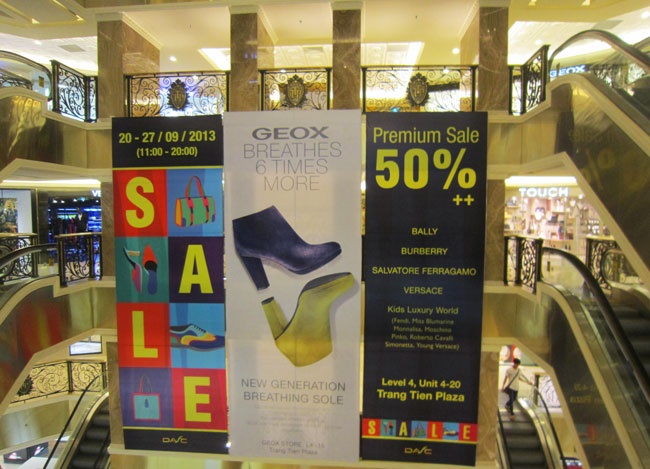 | Trên tất cả các tầng của khu thương mại này, biển giảm giá được treo tại những vị trí bắt mắt nhất nhưng không thu hút được nhiều khách hàng. |