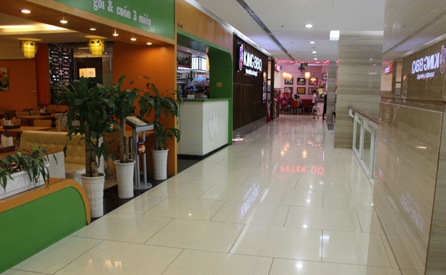| Ngoài khu ăn uống trên tầng 7 còn đông khách, các gian hàng khác khá ảm đạm. |