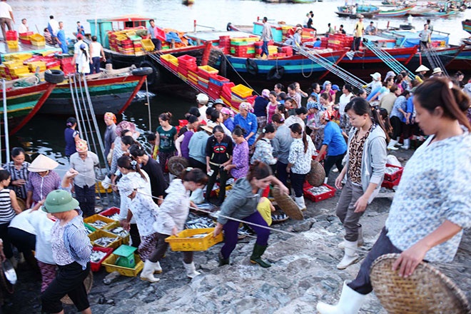 | Chợ tuy đông đúc nhưng không ồn ào. Ai thích thì mua, không thích thì xem cũng chẳng sao. Người bán nói thách vừa phải hoặc bán sát giá. Chợ còn có những hộ chuyên làm nghề nướng tôm, cá, mực... Khách muốn có đồ hải sản mang về làm quà, chỉ cần mua hải sản tươi ở chợ, nhờ người bán rửa sạch, sau đó thuê nướng là sẽ có ngay món mình ưng ý. |