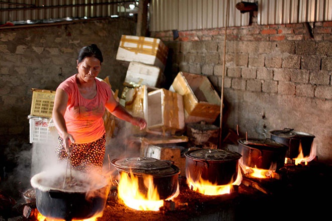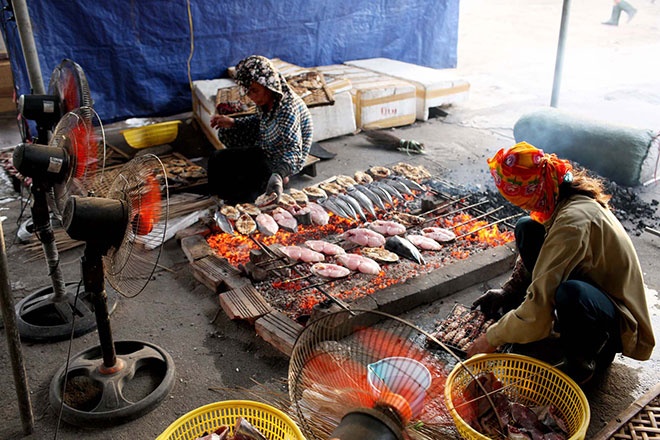 | Nướng cá trước khi vận chuyển đến vùng xa. |