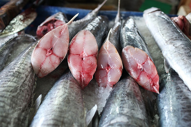 | Những con cá thu tươi được người dân bán ở chợ. |