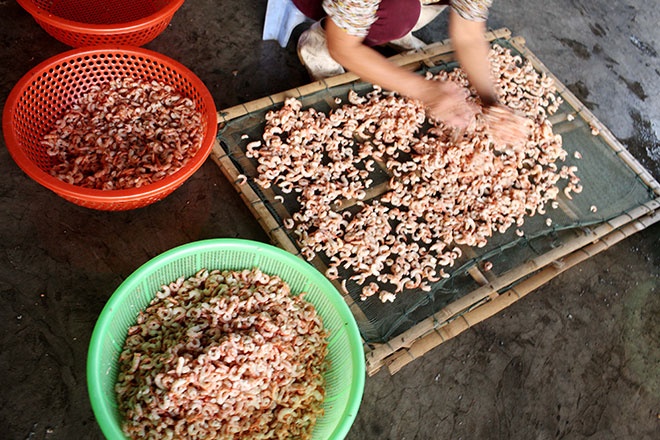 | Chọn lọc tôm nõn sau khi sơ chế |