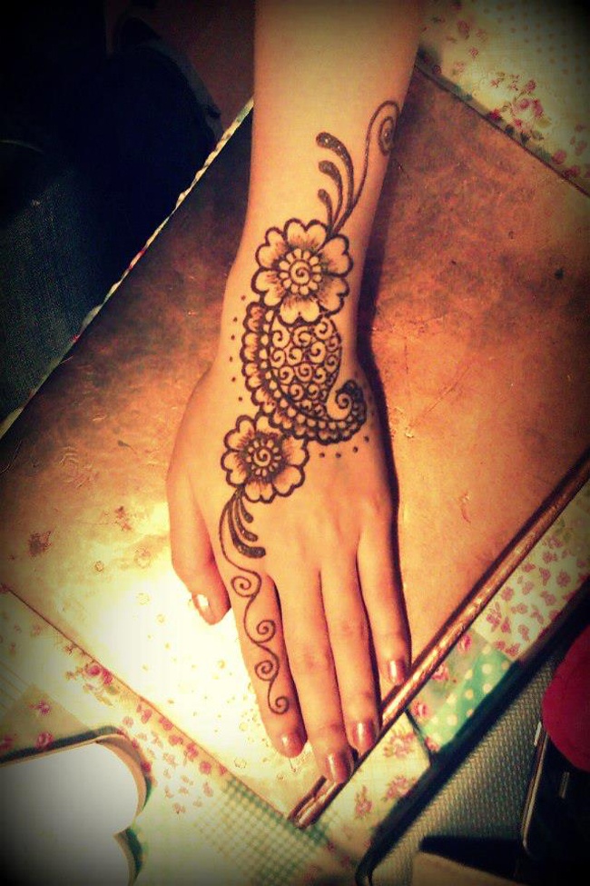| Henna thường được xăm lên cánh tay, chân, vai hoặc cả lưng… Không chỉ đẹp, mỗi hình vẽ đều có ý nghĩa riêng. Henna hình hoa lá biểu tượng cho sự sinh sôi, cho sự bắt đầu của một tình yêu mới và cuộc sống mới. |