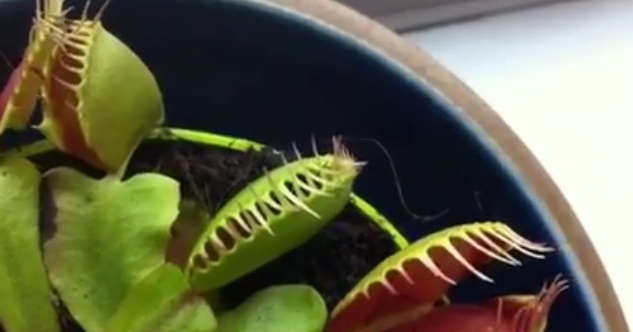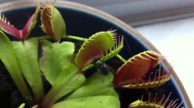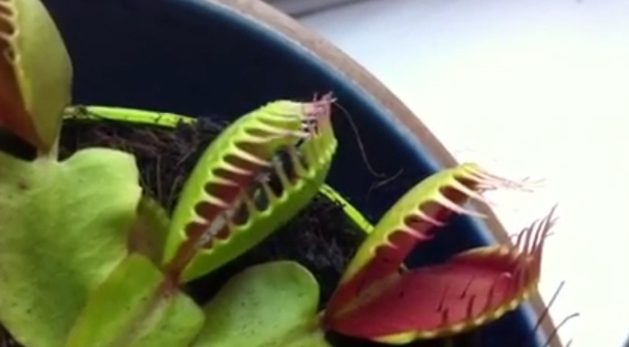 | Cái bẫy đóng lại trong nháy mắt. Khi con mồi rơi vào bẫy, cây sẽ tiết ra dịch tiêu hóa biến chúng thành chất dinh dưỡng nuôi cây. Quá trình tiêu hóa diễn ra trong khoảng 5-12 ngày. |