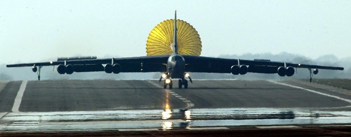 Theo kế hoạch, máy bay ném bom chiến lược B-52 của Mỹ sẽ thực hiện nhiều nhiệm vụ, bao gồm cả tham gia diễn tập ở Latvia. Ảnh: RT