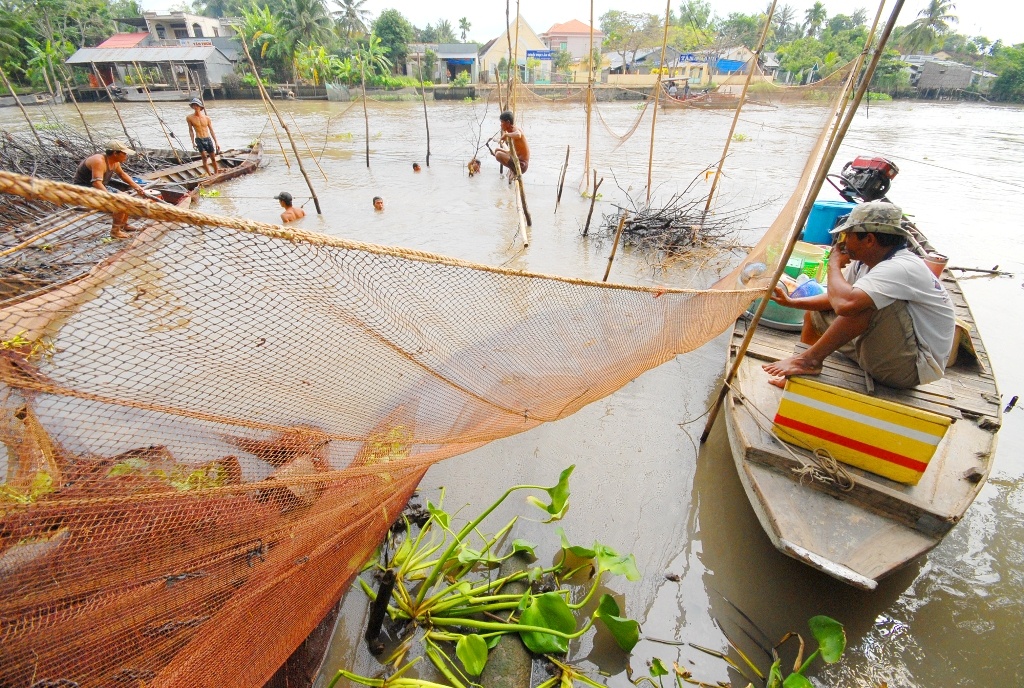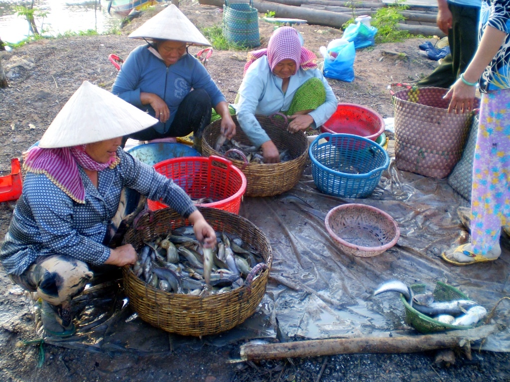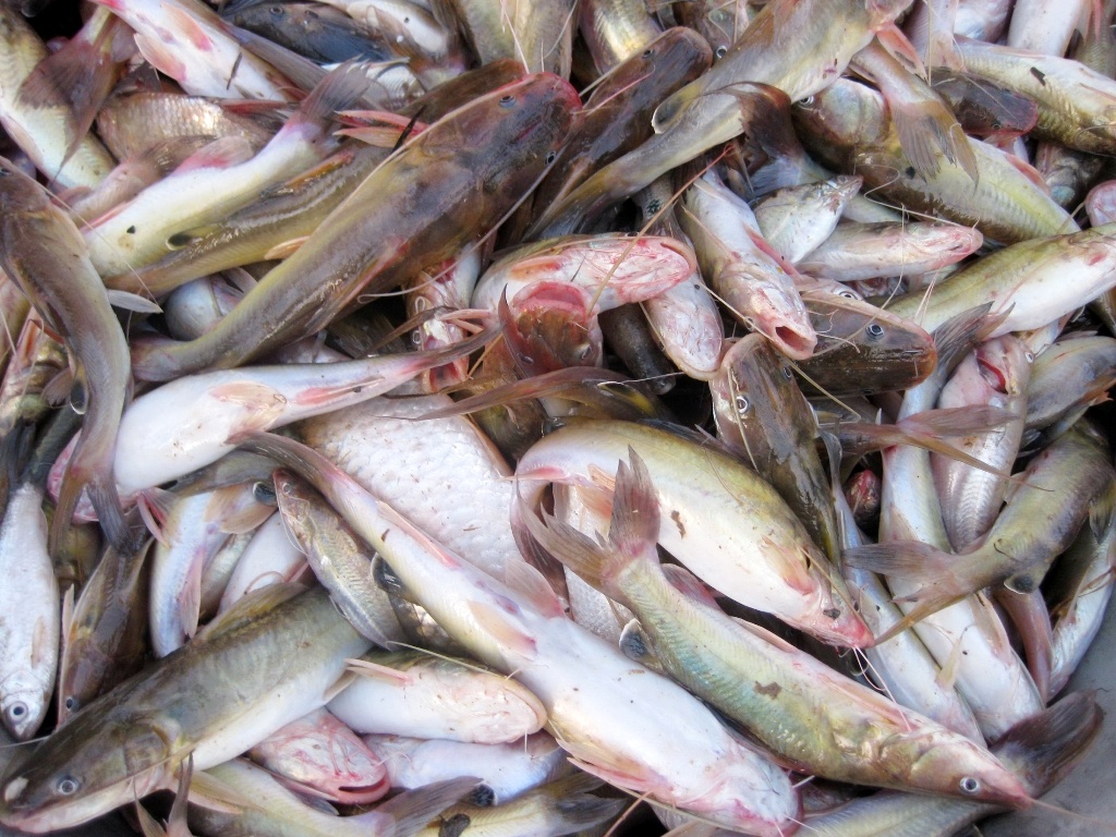 | Những con cá nhỏ được người dân phân loại để ăn hoặc đem đi cho hàng xóm. |