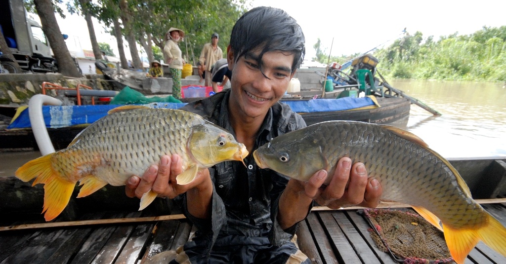 Niềm vui của ngư dân khi bắt được cá lớn.