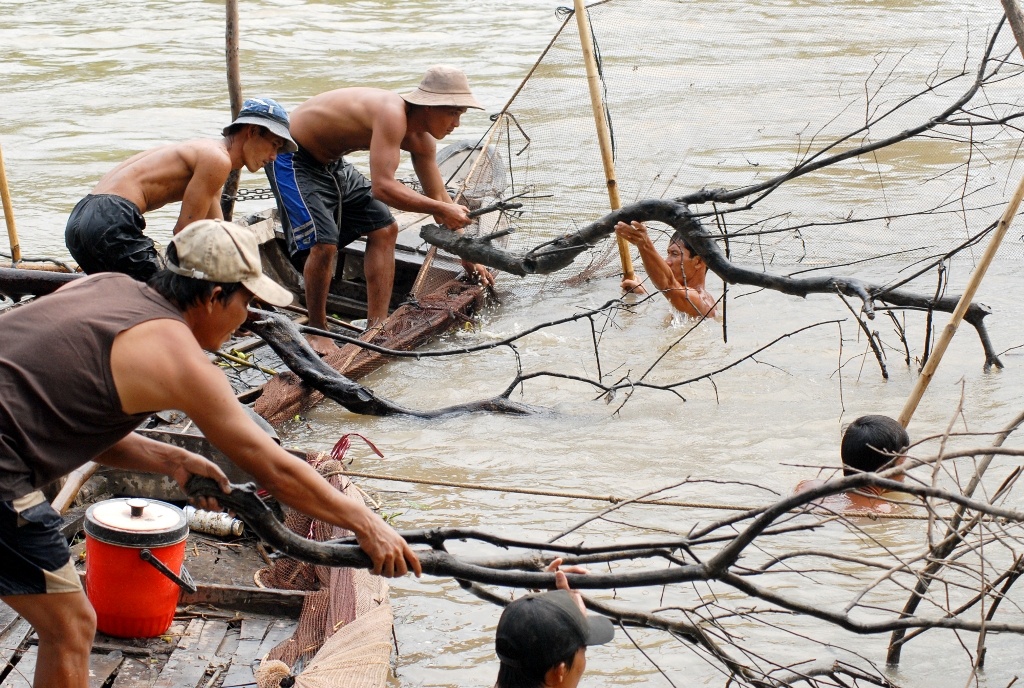 Lặn mò những nhánh chà dưới nước. Đây là việc đòi hỏi người có sức khỏe, ngâm mình dưới nước hàng giờ.