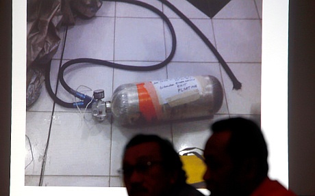 Ảnh chụp bình khí nén được công bố trong buổi họp báo. Nhiều khả năng, nó là một phần của hệ thống máng trượt bơm hơi, vốn được sử dụng trong các tình huống khẩn cấp. Mọi máy bay đều được trang bị những thiết bị này để sơ tán hành khách trong trường hợp khẩn cấp. |