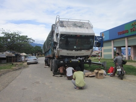 | Tại hiện trường đoàn xe gồm 11 chiếc, mang BKS các tỉnh Nghệ An, Bình Định, Hà Nội. |