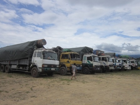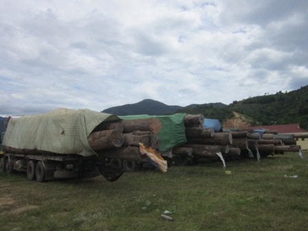 Những thân gỗ chòi ra khỏi thùng xe ngạo nghễ như những nòng pháo.