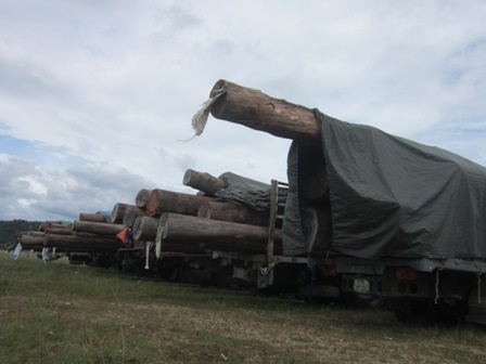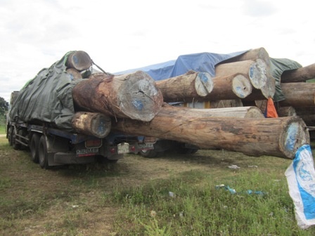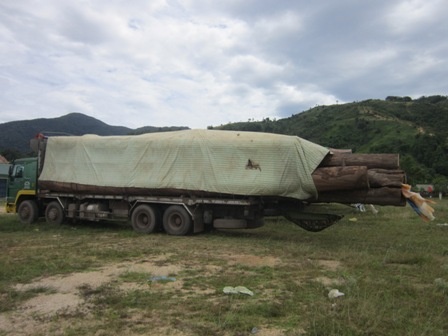 Những khối gỗ có giá trị cao được xếp dày đặc trên thùng xe.