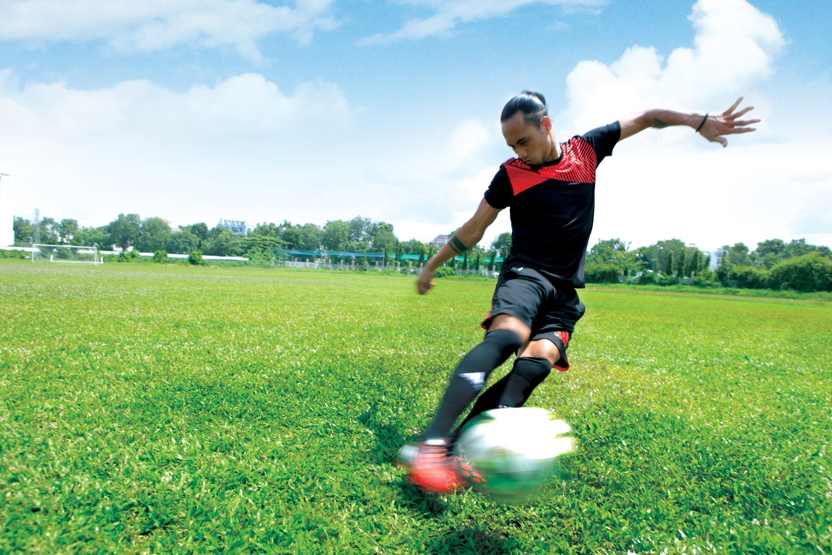 | Rocker Phạm Anh Khoa gọi đây là “vũ khí đáng gờm”, phối hợp hoàn hảo với lối chơi bóng mạnh mẽ và thiên về tốc độ của anh. |