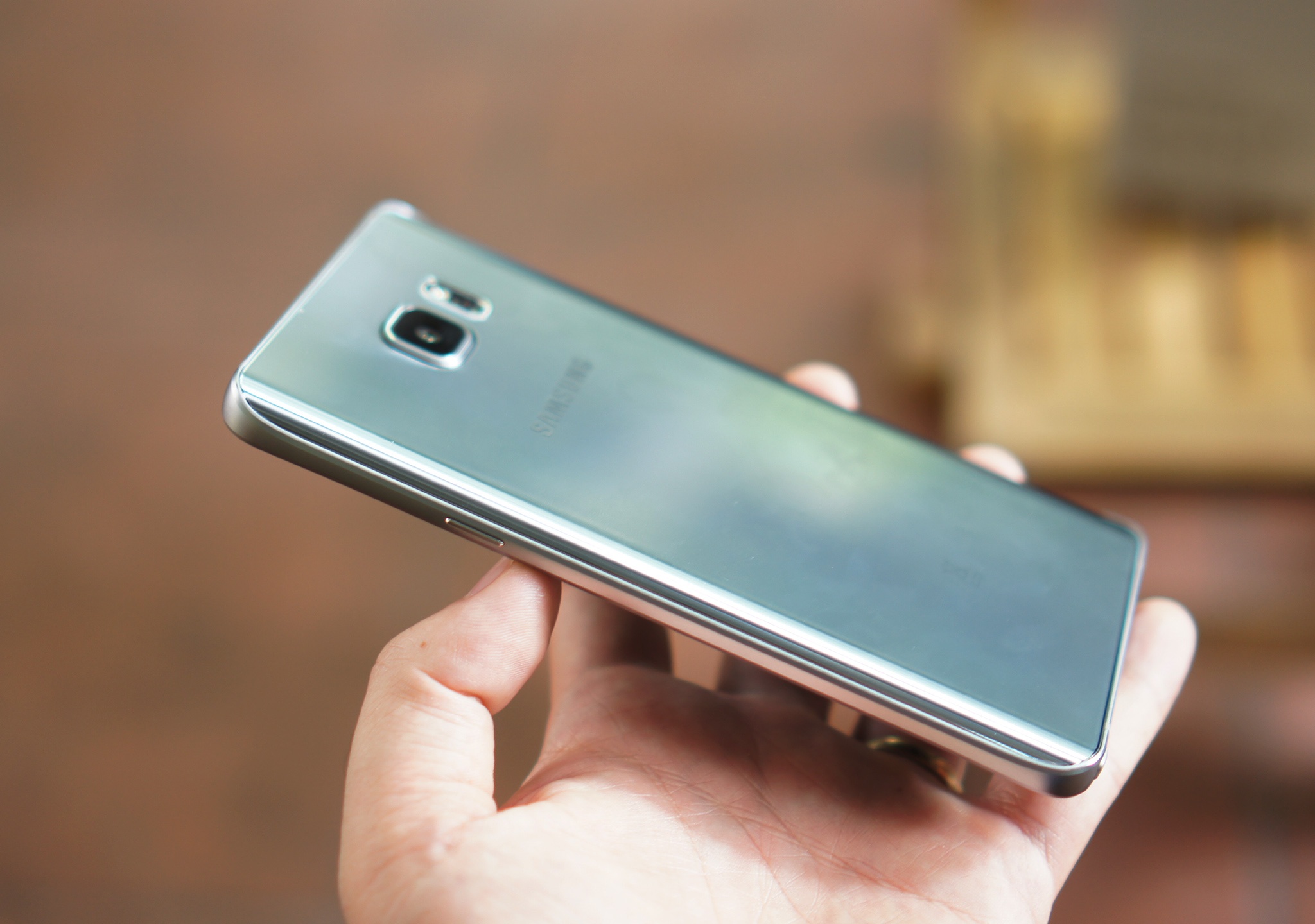 | Galaxy S6 Edge+ cong ở mặt trước còn Note 5 cong ở mặt sau. Cả 2 đều dùng camera lồi. Có thể thấy, màu sắc ở mặt lưng của máy thay đổi tuỳ từng điều kiện ánh sáng: khi gặp ánh sáng yếu, màu sẽ ngả xám, ánh sáng vừa phải là màu xám bạc còn khi có ánh sáng mạnh, máy chuyển gần như sang màu bạc phản quang. |
