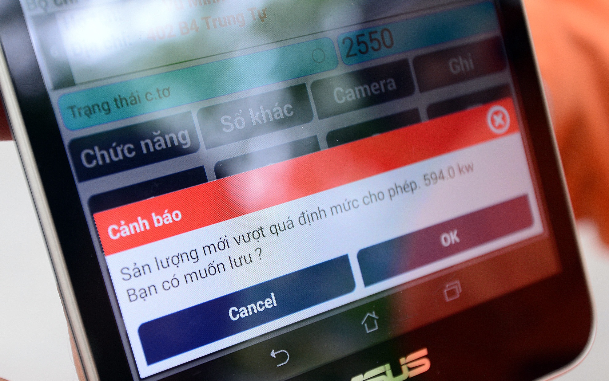 Mỗi thiết bị có mã số wifi và mật khẩu riêng. Theo EVN Đống Đa, sau buổi ghi chỉ số công tơ điện, công nhân phải giao nộp thông tin trong máy tính bảng cho EVN Hà Nội để nhập dữ liệu.
