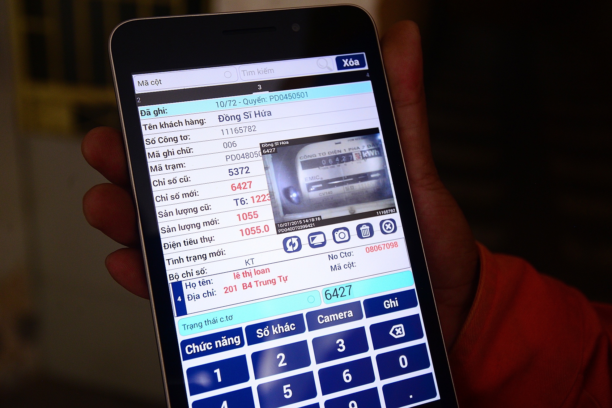 Công ty điện lực Đống Đa đã trang bị 6 bộ dụng cụ mới cho 12 công nhân để phục vụ việc ghi số điện. Bộ thiết bị ghi điện gồm 3 phần, gậy có thể điều chỉnh độ dài, camera gắn sim 3G và máy tính bảng. Camera dùng để chụp hình ảnh chỉ số công tơ, nối vào máy tính bảng và số liệu được nhập bằng tay sau đó, rồi truyền trực tiếp về trung tâm.