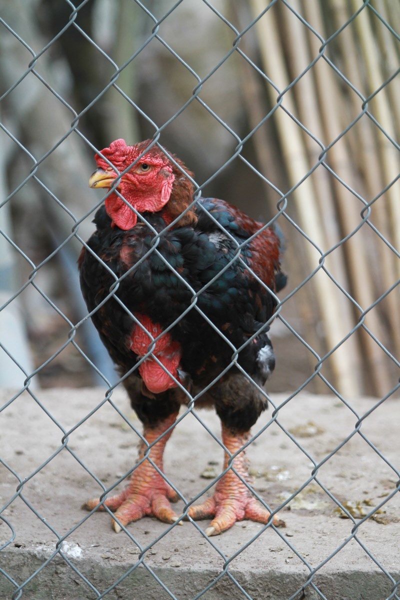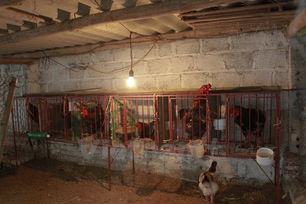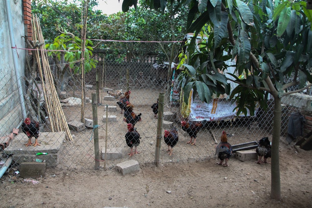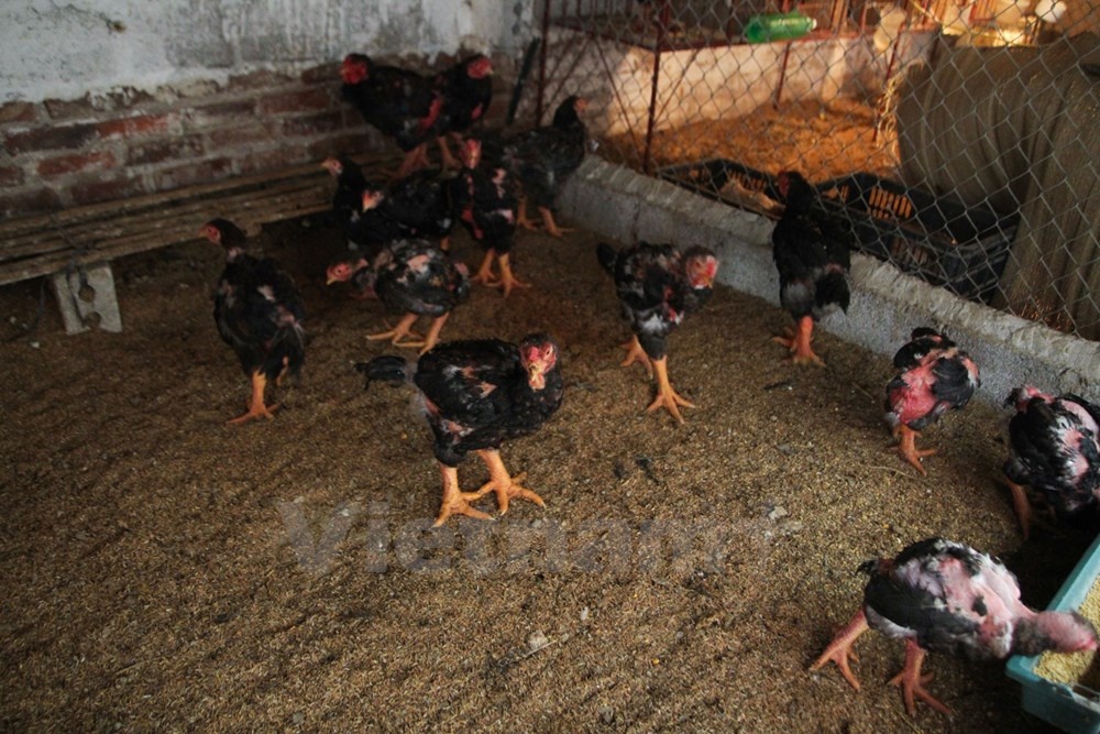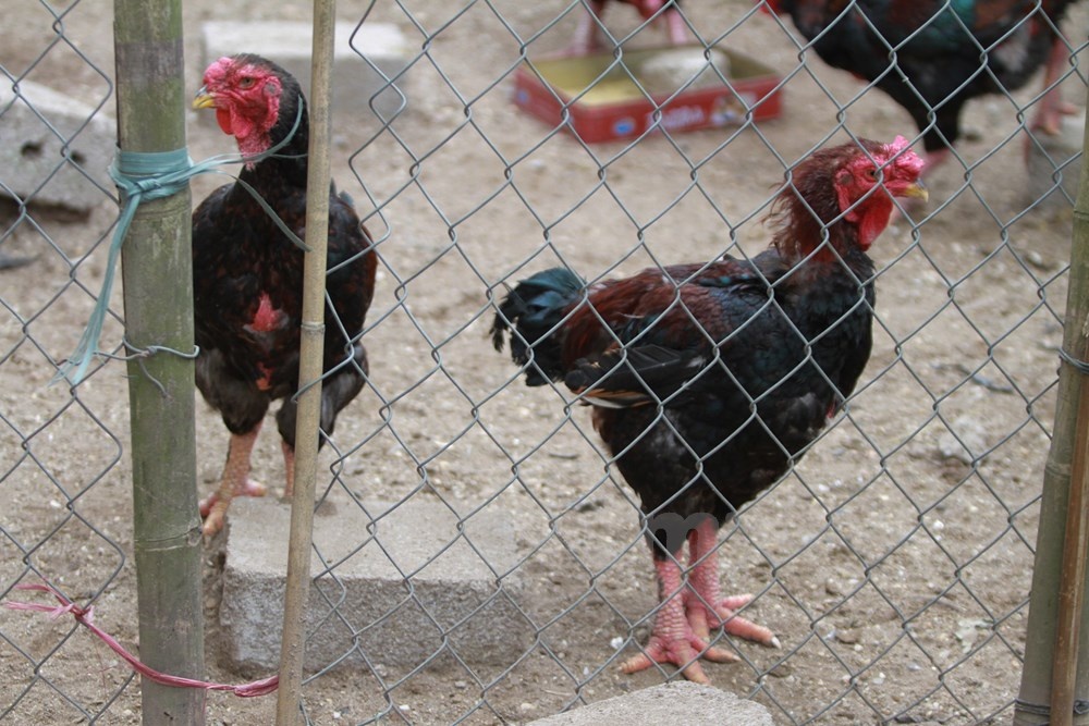 | Những con gà thuần chủng, giống đẹp được nuôi ở lồng riêng với chế độ chăm sóc đặc biệt. Gà được cho ăn ngô, lúa, cám, rau và phải nuôi gần 2 năm mới cho ra được một con gà đẹp. |