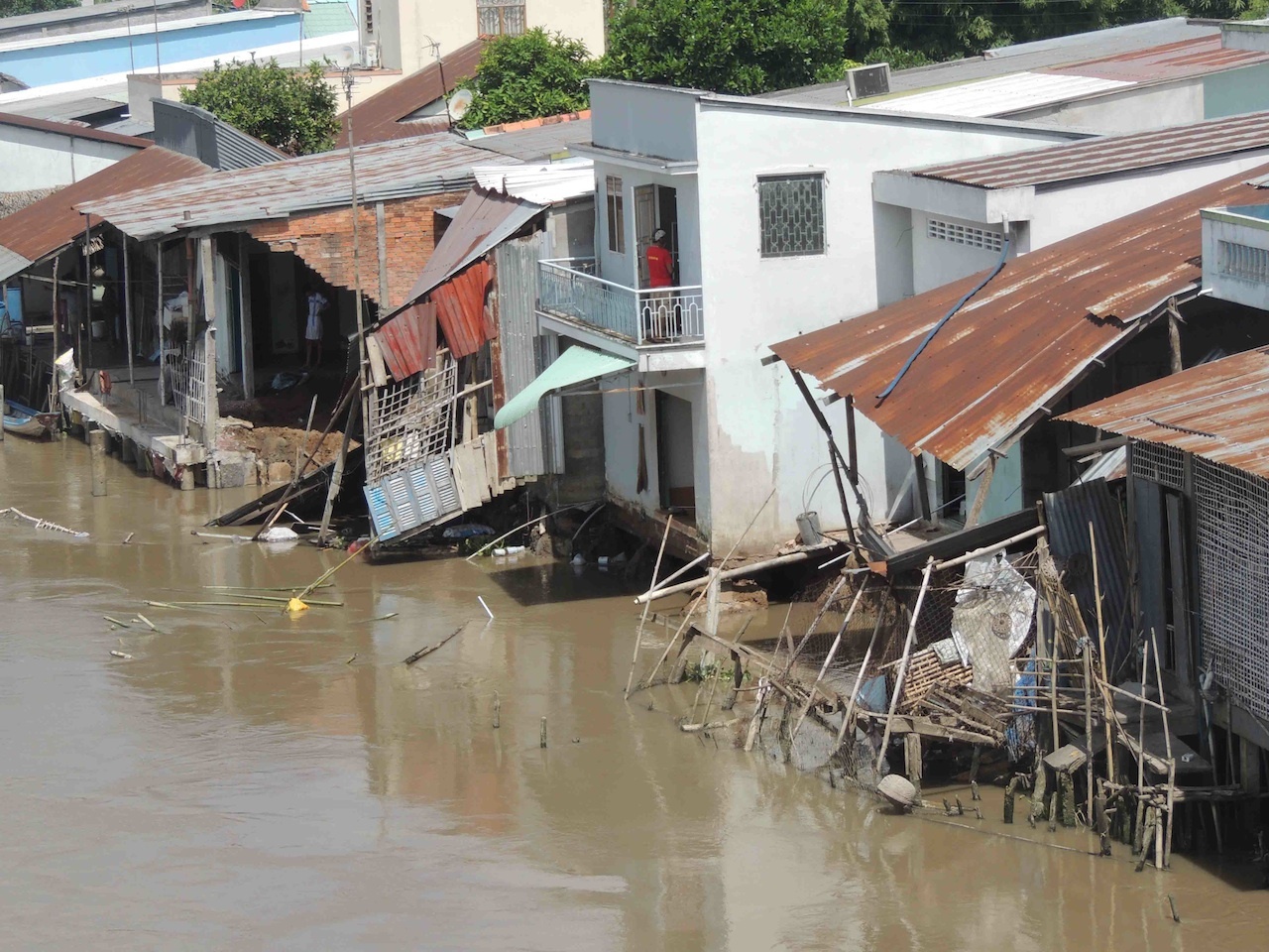 Cận cảnh hàng chục căn nhà sập xuống sông ở Hậu Giang