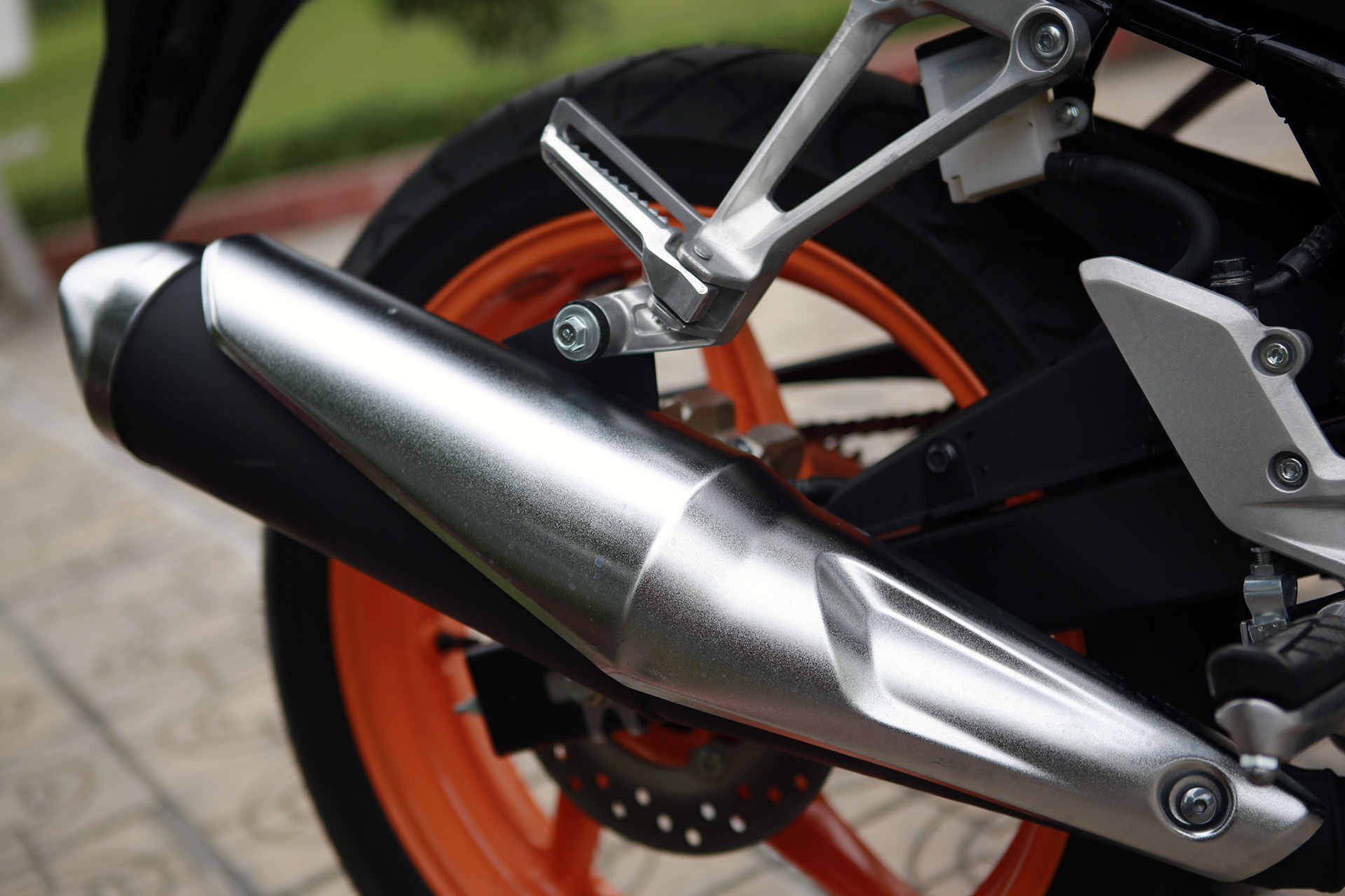 | Ống xả trên CBR150R mới được thiết kế lại so với phiên bản cũ. Kiểu dáng mới thuôn dài hơn và được ốp bảo vệ bằng kim loại. |