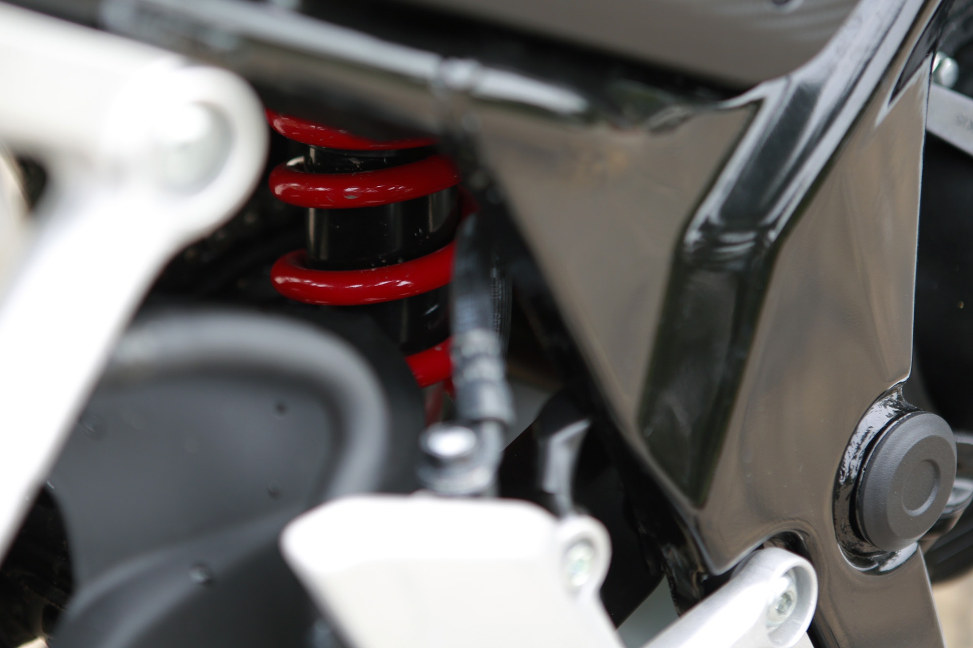 | Trang bị an toàn phía trước là hệ thống phanh đĩa đơn, đường kính 276 mm. Bộ lốp không săm kích thước 100/80-17, đi cùng vành xe 5 chấu thể thao. Giảm xóc trước dạng ống lồng thủy lực. |