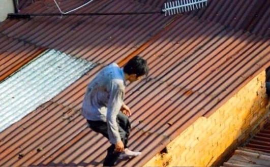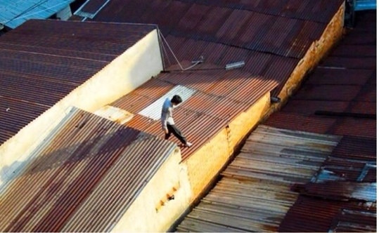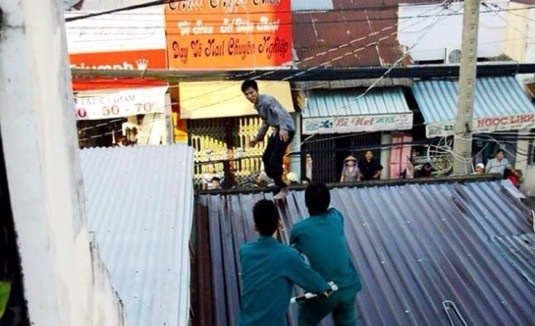 ... Và nhảy qua nhiều mái nhà hàng xóm để trốn sự truy đuổi của công an.