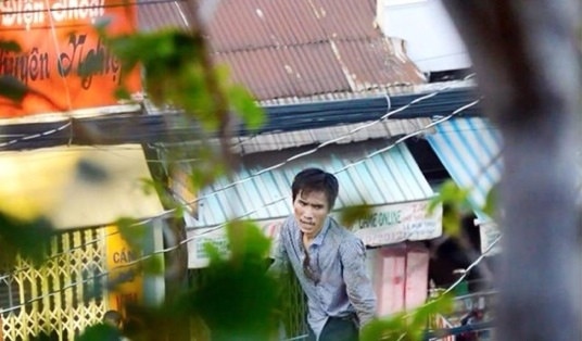 Tuy nhiên công an đã bao vây tứ phía và do mệt nên Nam dừng lại rồi ngồi trên mái nhà ngoái cổ nhìn lực lượng dân phòng, công an truy đuổi.