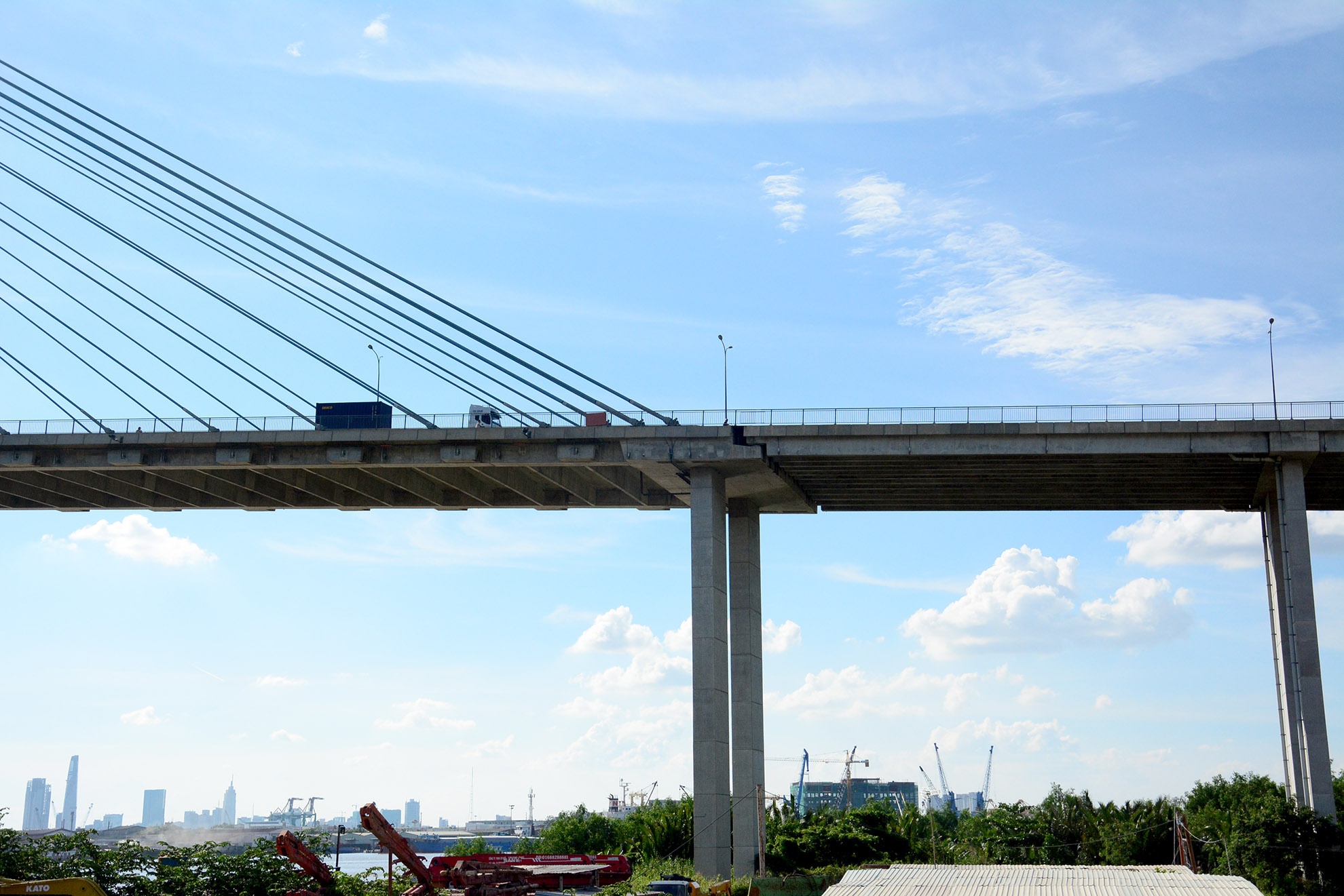 Đoạn nối giữa phần dây văng và đường dẫn cầu Phú Mỹ nhìn từ phía quận 7.