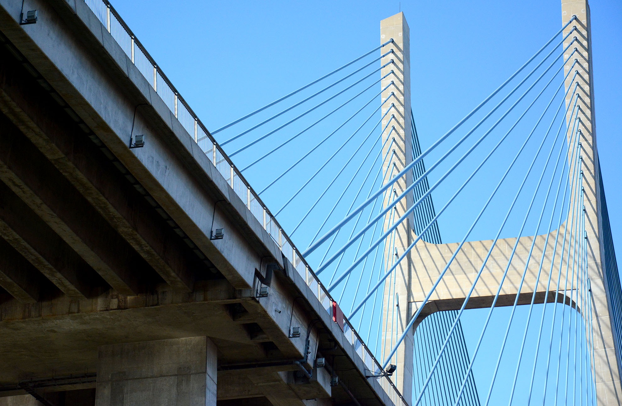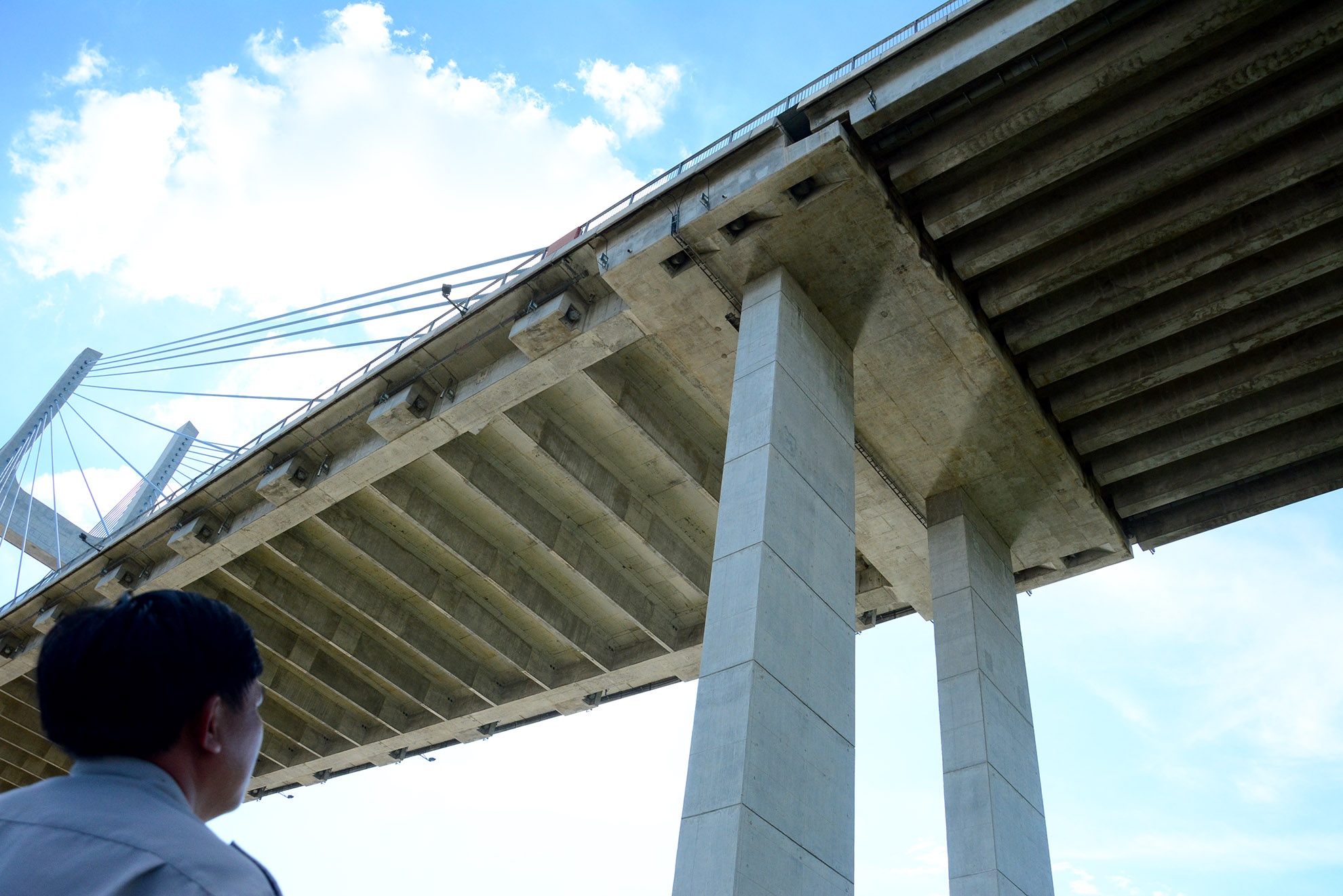 | Vị trí hở nằm giữa phần dây văng và phần đường dẫn cầu. |