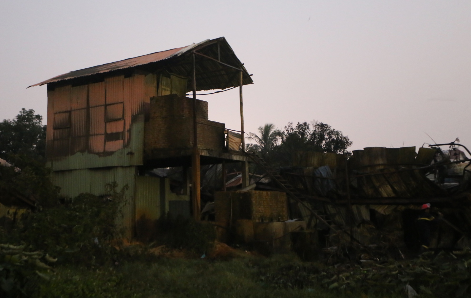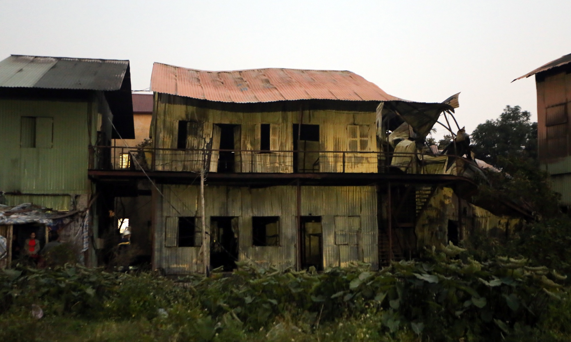 Cảnh tượng sập xệ tại khu công nhân xảy ra cháy chiều nay.
