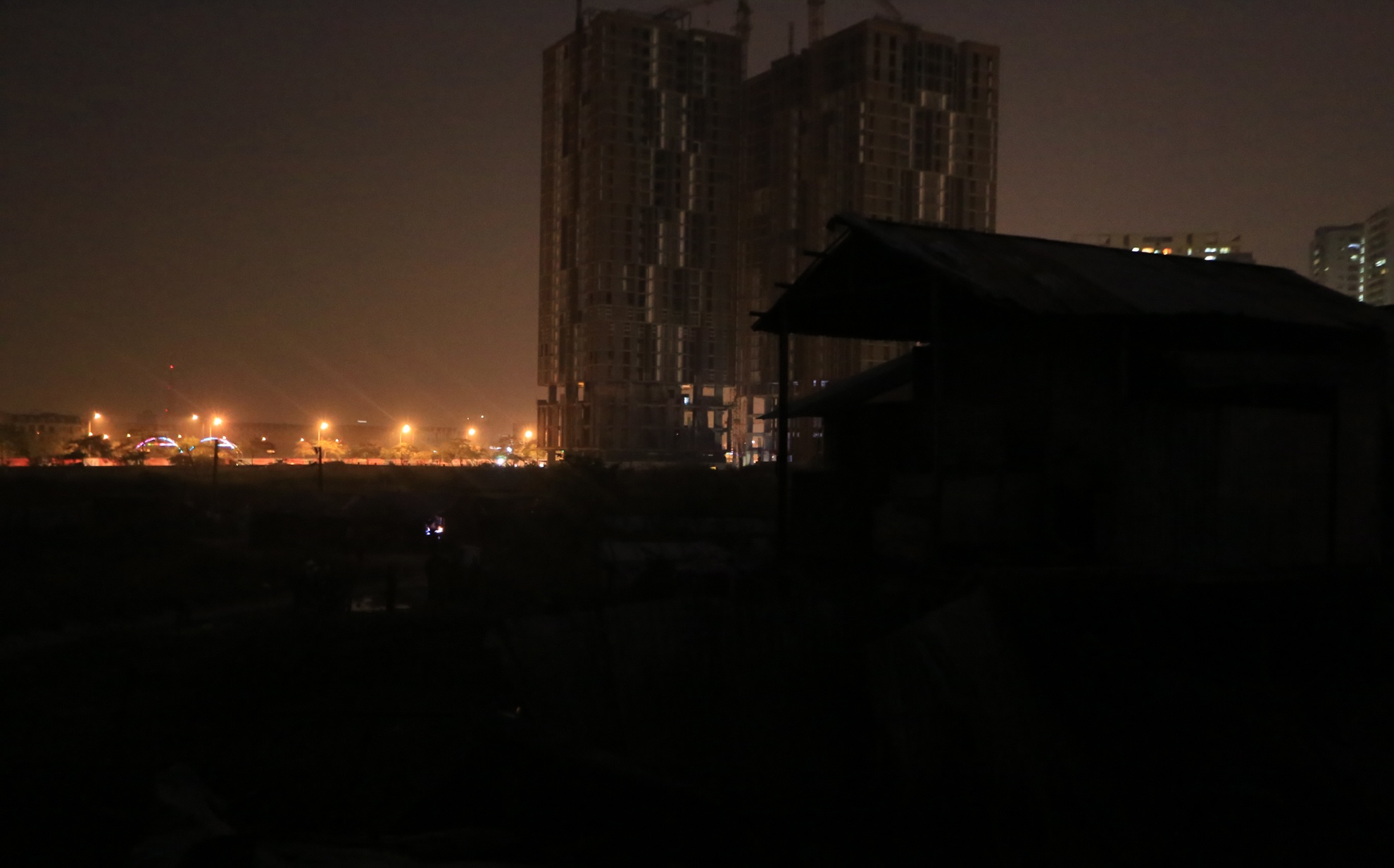 Xung quanh những khu nhà ở công nhân là những khu cao ốc, chung cư cao tầng đang được xây dựng và đã hoàn thiện.