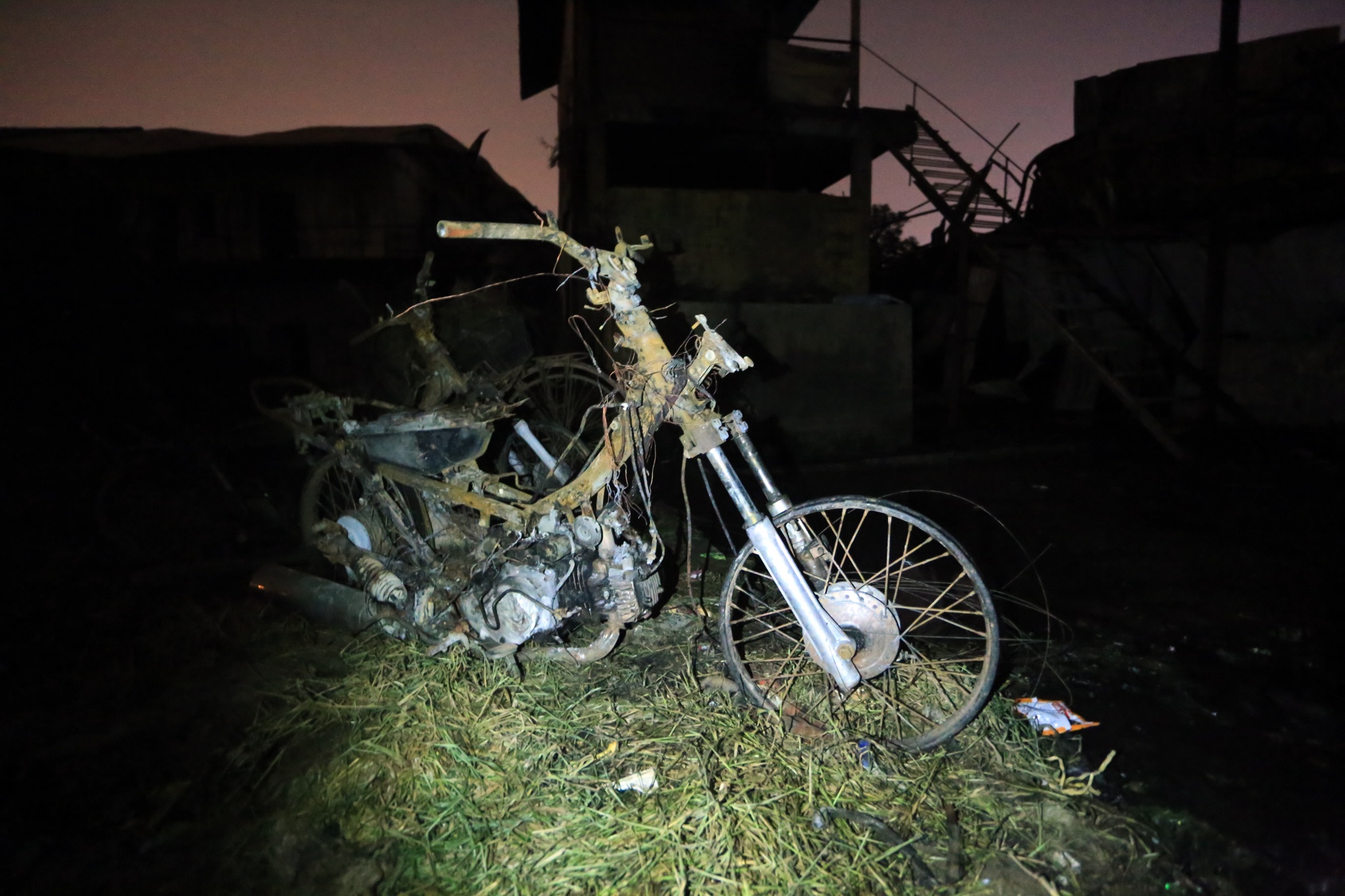 Hơn 10 chiếc xe máy cùng nhiều xe đạp bị cháy rụi hoàn toàn.