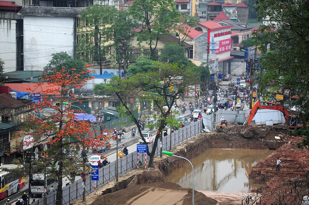 Từ ngày khởi công đoạn từ hướng giao với phố Tây Sơn tới đường Giải Phóng vẫn được khẩn trương thi công. Tuy nhiên, đến đoạn qua các đơn vị trực thuộc Quân chủng Phòng không Không quân chưa có dấu hiệu triển khai dự án. Nhiều hộ dân nơi đây khiếu kiện cho rằng dự án bị bẻ cong, né nhà quan chức.