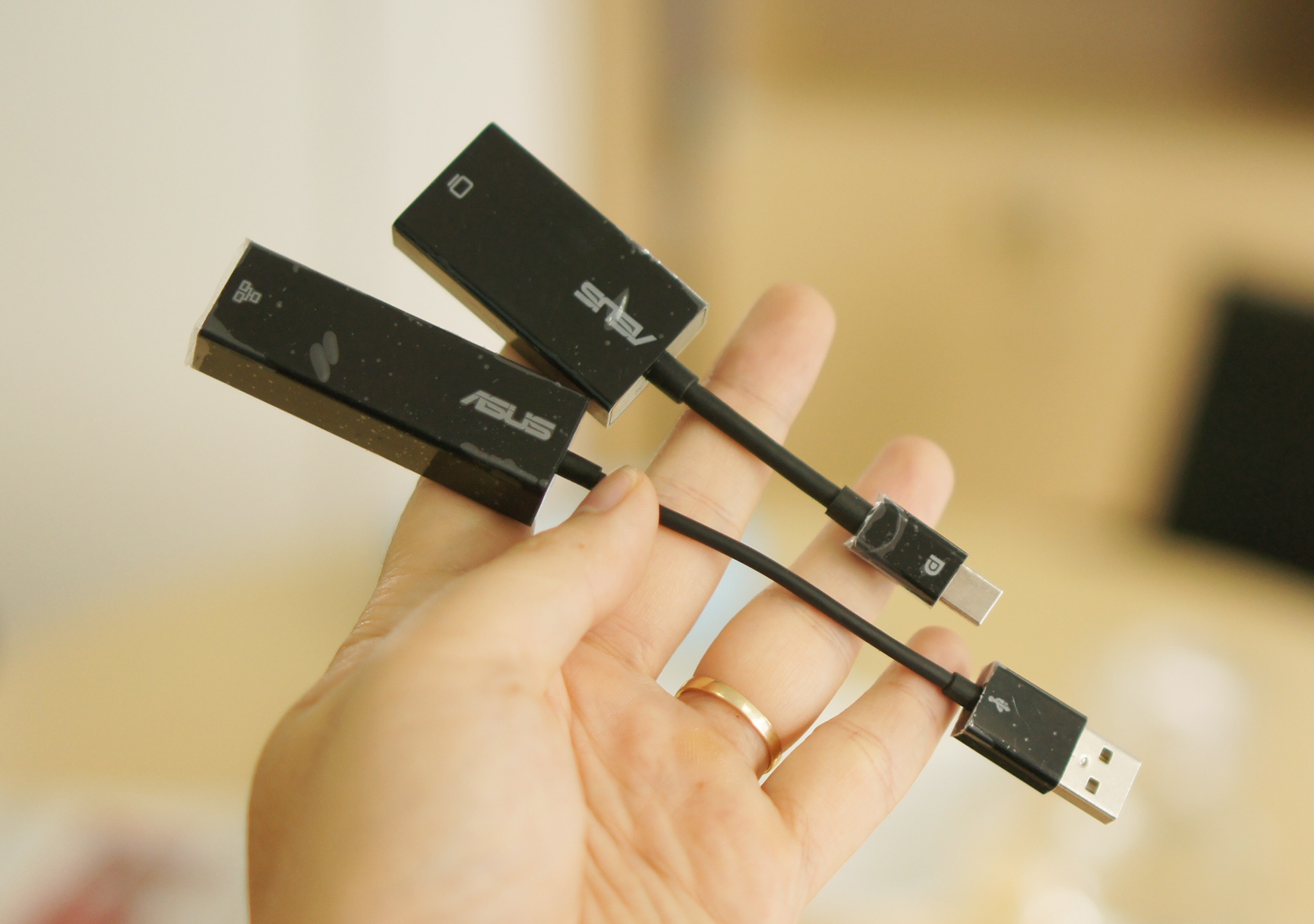 | Asus Zenbook UX303UA được bán kèm với túi đựng khá đẹp mắt, cục sạc tiêu chuẩn và 2 đầu chuyển dùng để cắm mạng LAN và kết nối VGA. Giá bán của máy là 19,99 triệu đồng. |