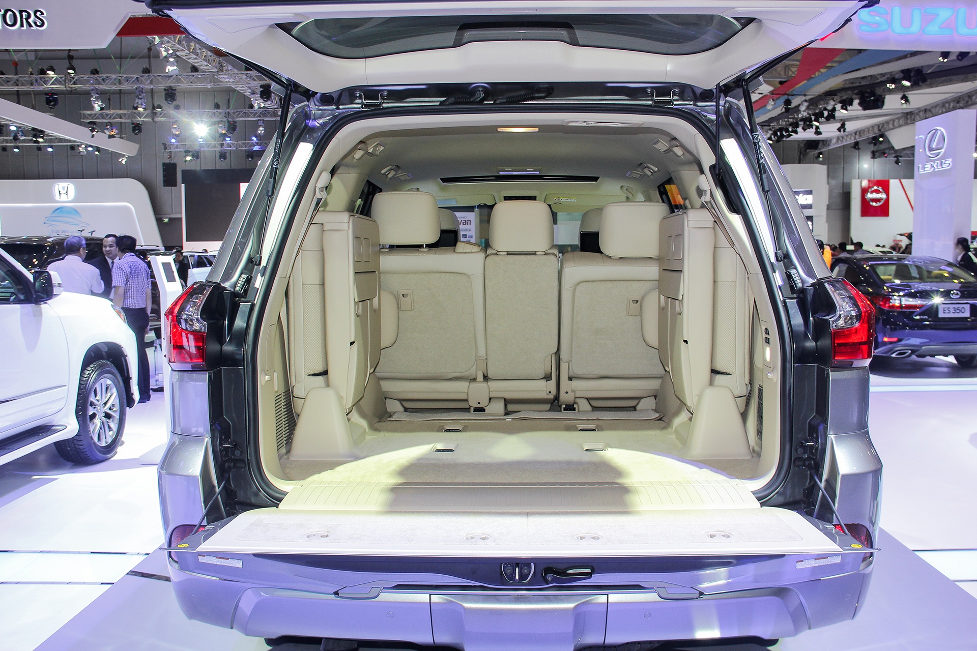Không gian chứa đồ phía sau có thể tăng thêm khi gập hàng ghế cuối cùng. Tấm cửa sau bên dưới của mẫu SUV 8 chỗ này có thể mở phẳng, thuận tiện cho việc chứa đồ.