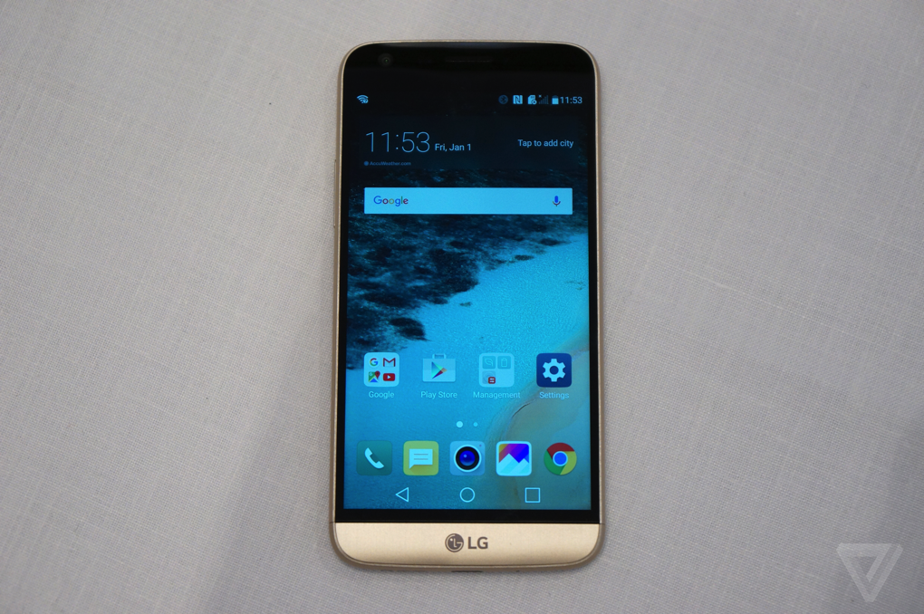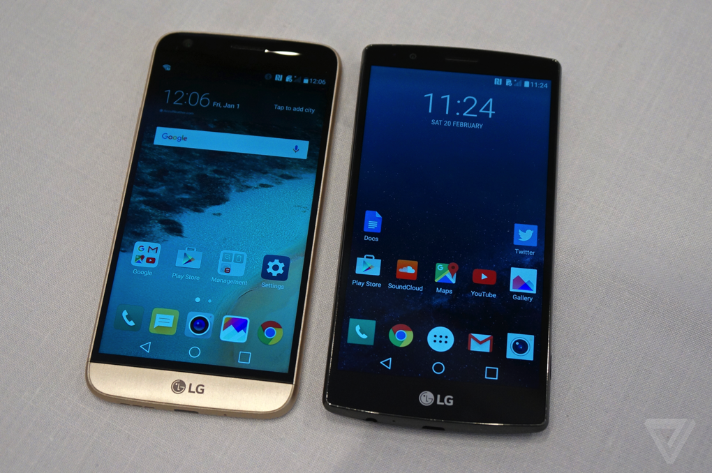 | Trên G5, LG quyết định loại bỏ phần apps drawer. Các ứng dụng sẽ lấp đầy màn hình Home, giống với iPhone và một số mẫu điện thoại Trung Quốc hiện nay. Theo tin đồn mới đây, bản Android N năm 2016 cũng sẽ loại bỏ apps drawer. |