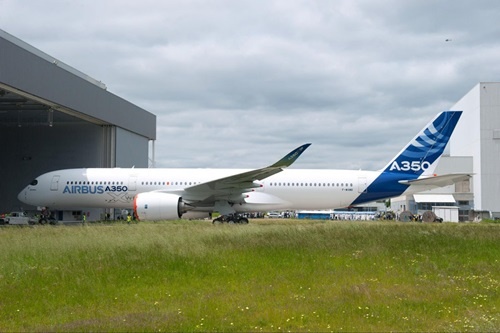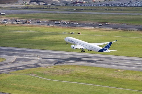 | Chuyến bay thử nghiệm đầu tiên của A350 vào tháng 6/2013 trong vòng 4 giờ. Đây sẽ là dòng máy bay chiến lược mới của Airbus, cạnh tranh với Drealiner của đối thủ Boeing. |