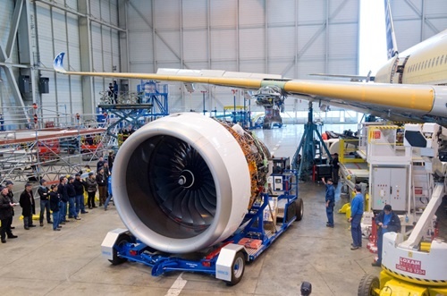 | Động cơ Rolls-Royce 1.000 mã lực là bộ phận quan trọng giúp Airbus tiết kiệm nhiên liệu hơn so với những dòng máy bay khác. |