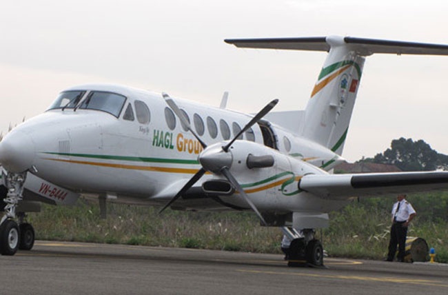 Chiếc máy bay thuộc dòng King Air 200 vừa đáp xuống sân bay Buôn Mê Thuột bằng bụng cùng loại với máy bay của ông chủ Hoàng Anh Gia Lai Đoàn Nguyên Đức.
