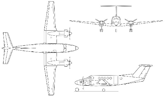 Mặt cắt của một chiếc King B200 tiêu chuẩn.