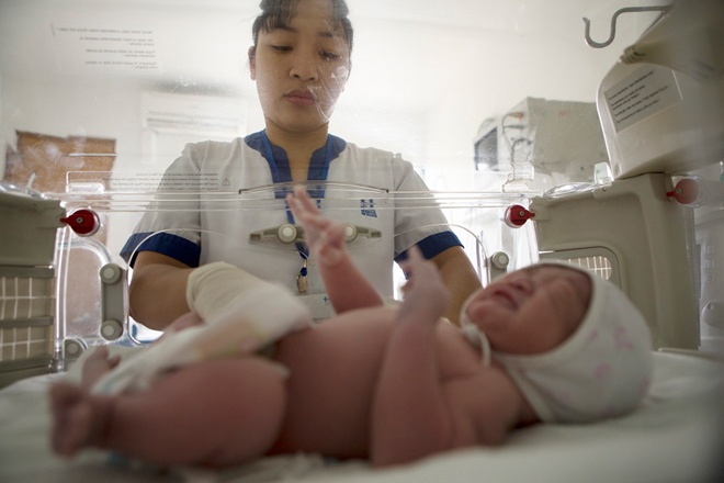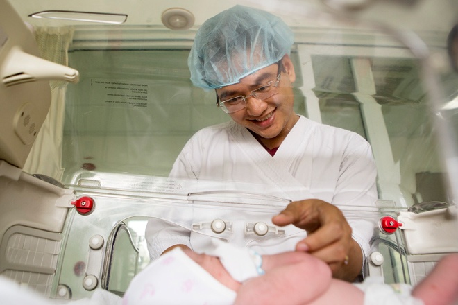 Nhưng chị chỉ được gặp con trong tích tắc. Ngay sau đó bé được bế đưa đi chăm sóc tại phòng đặc biệt.